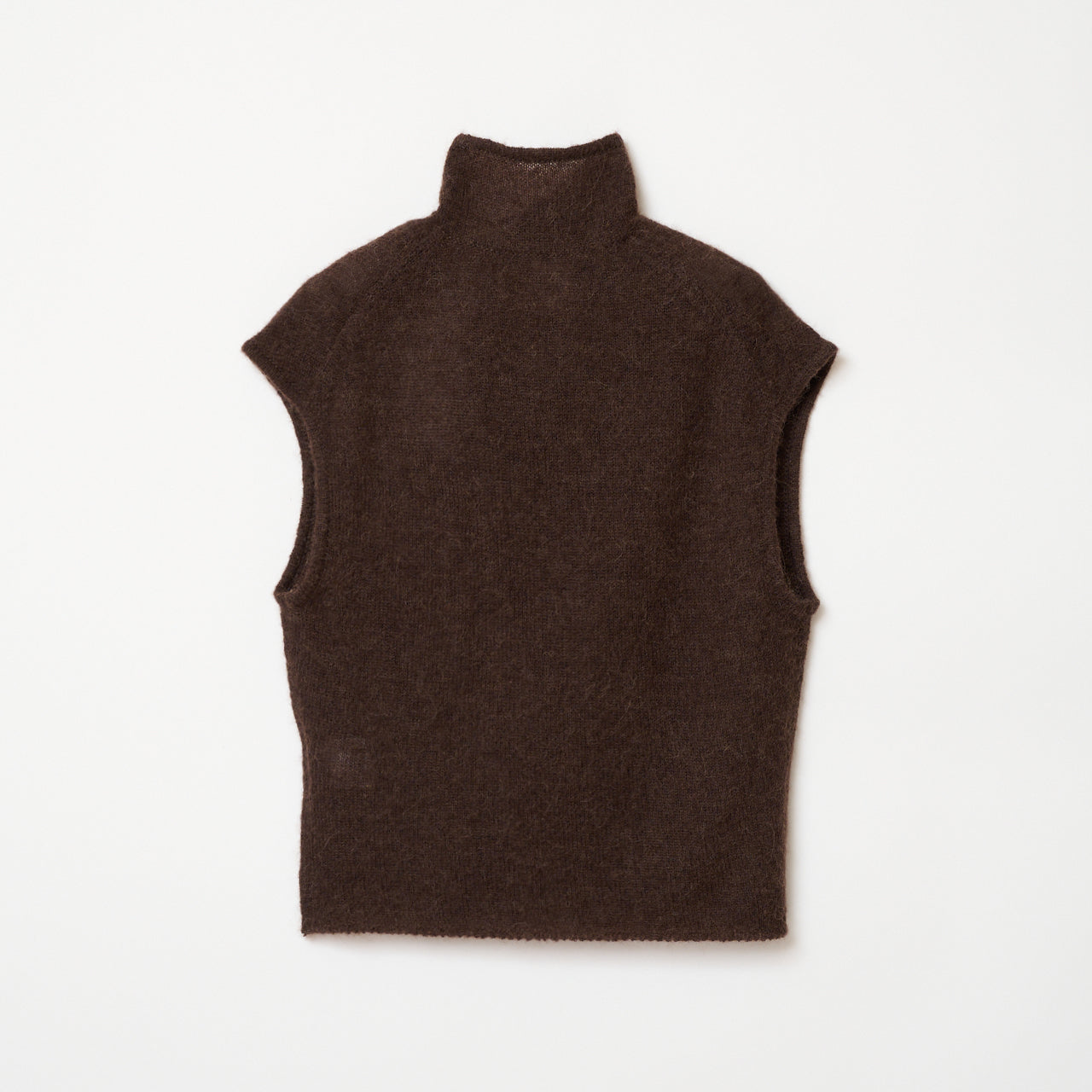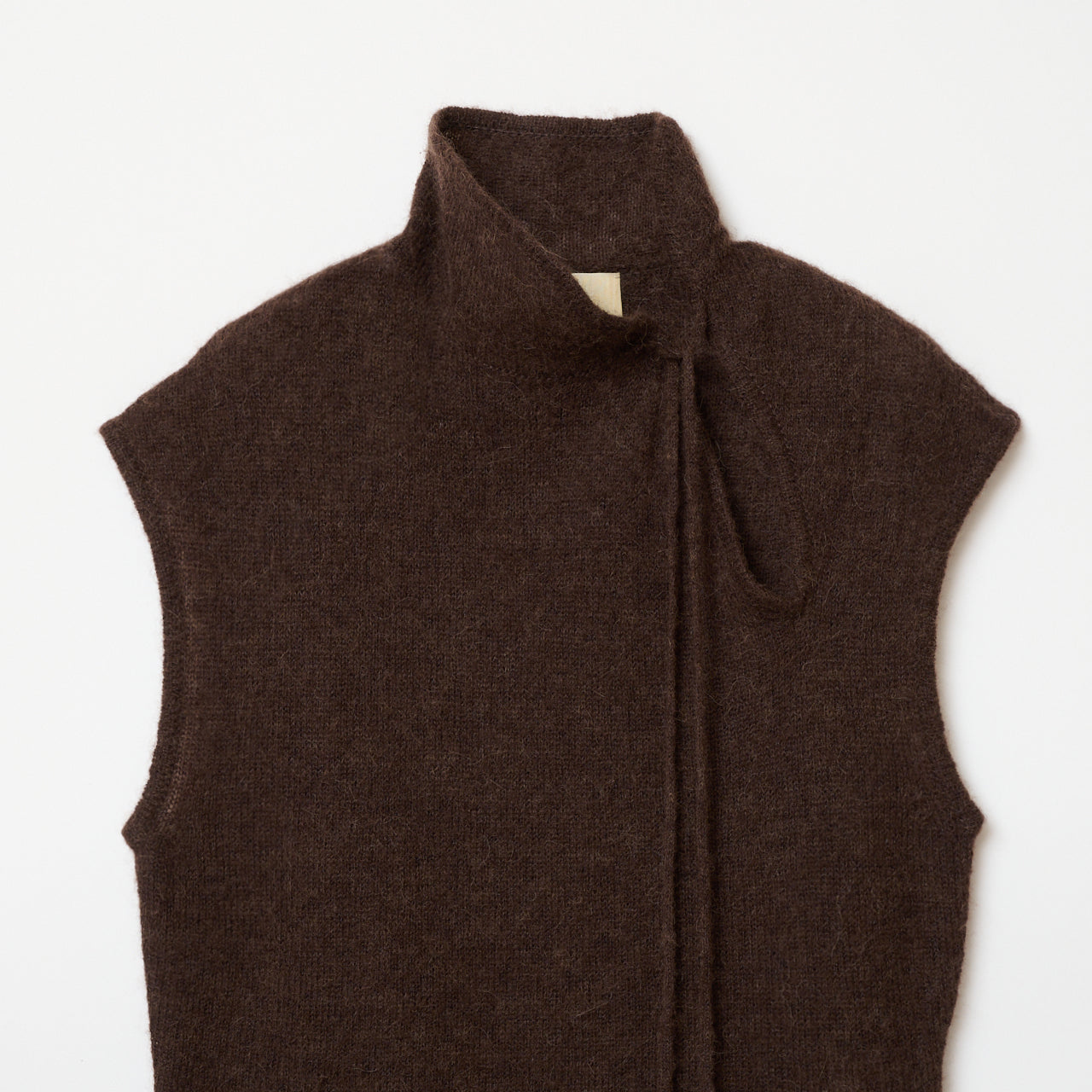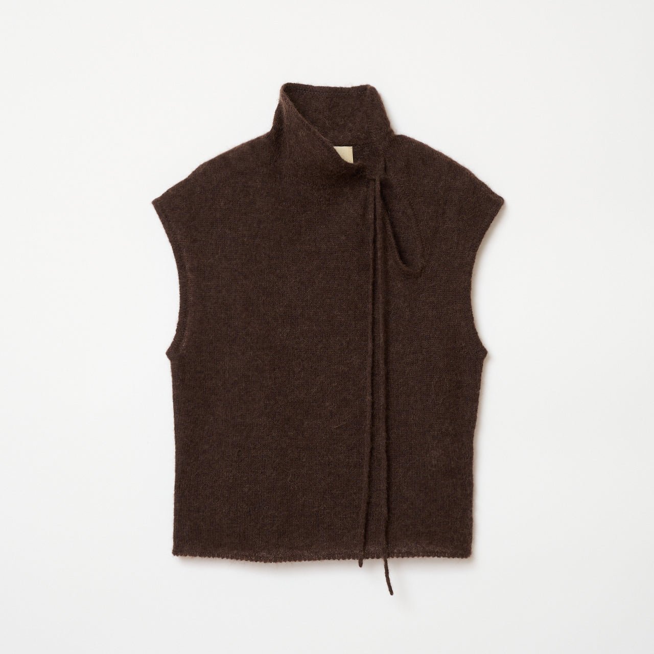 チャイナカラーのノースリーブニット。軽く柔らかなアルパカ混。