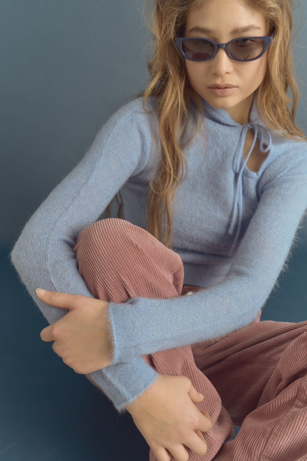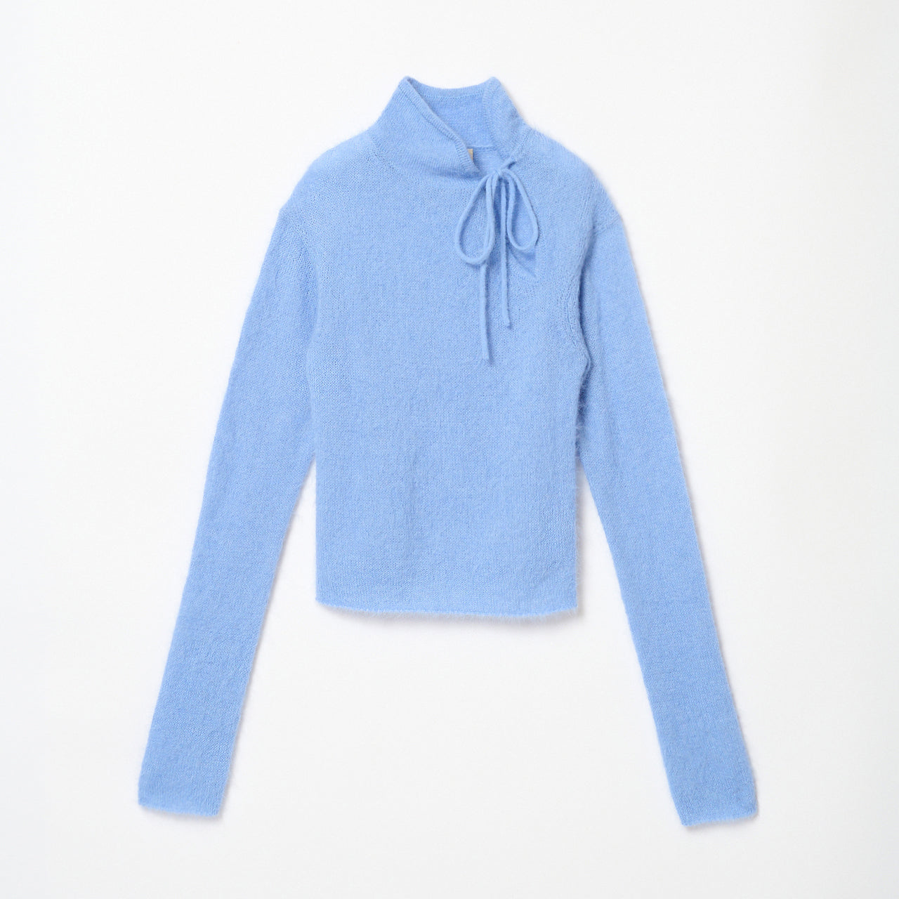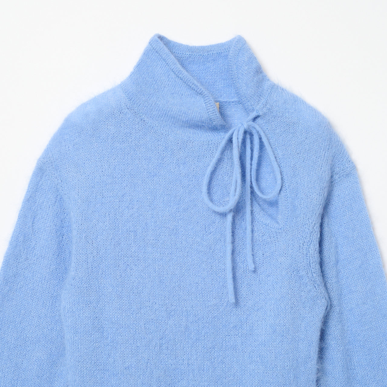 チャイナカラーのロングスリーブニット。軽く柔らかなアルパカ混。