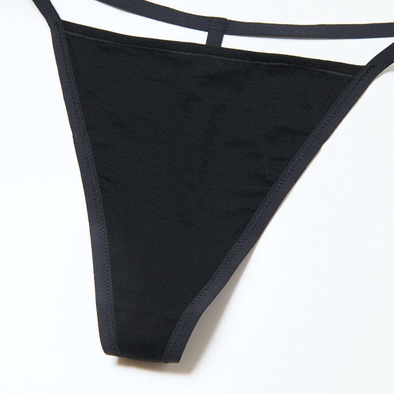 肌触りの良い生地と伸縮性のあるカラーテープを使用したストリング。サイズはS/ Mのサイズをご用意しています。