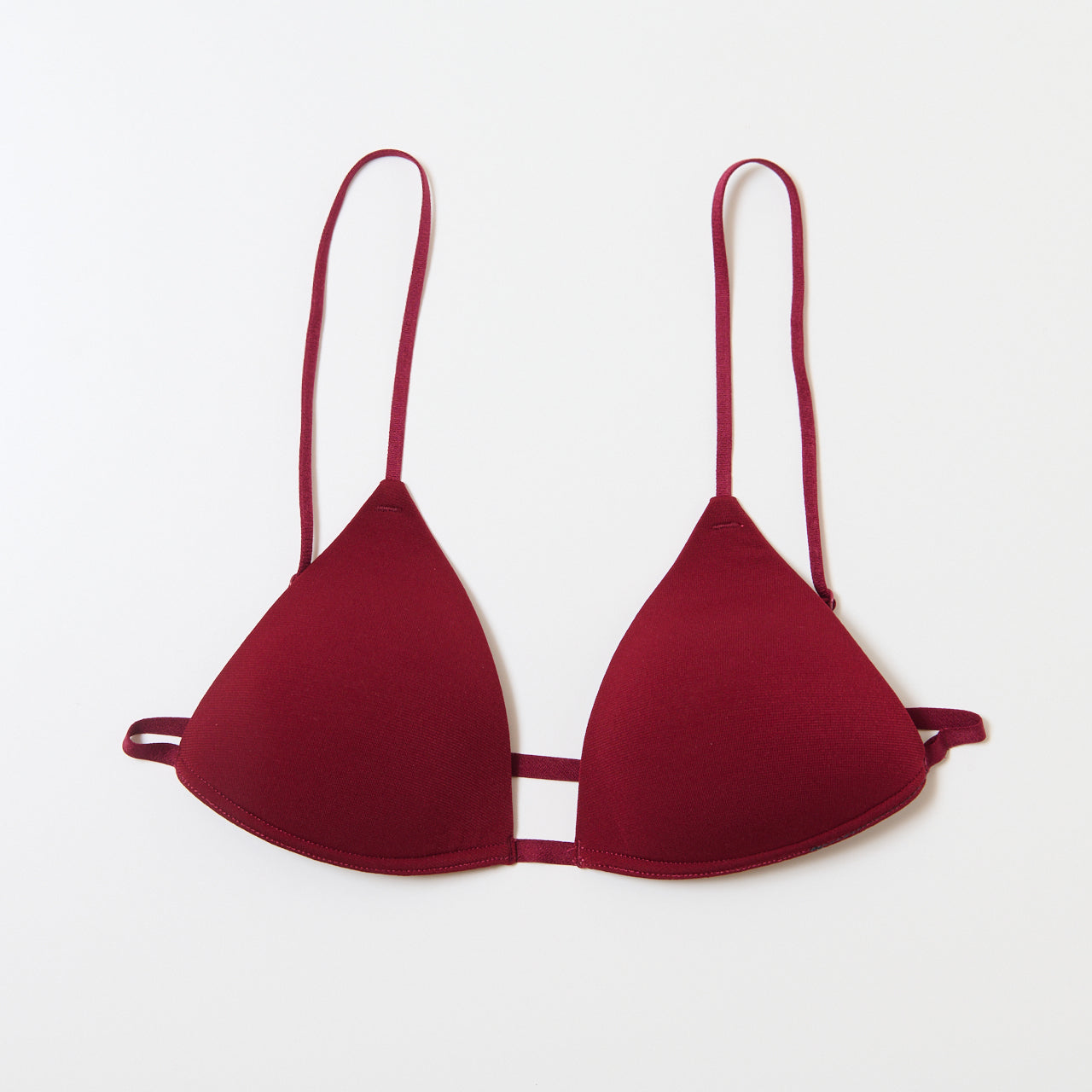 プルオーバータイプのノンワイヤーブラ。伸縮性のあるテープストラップを使用しています。