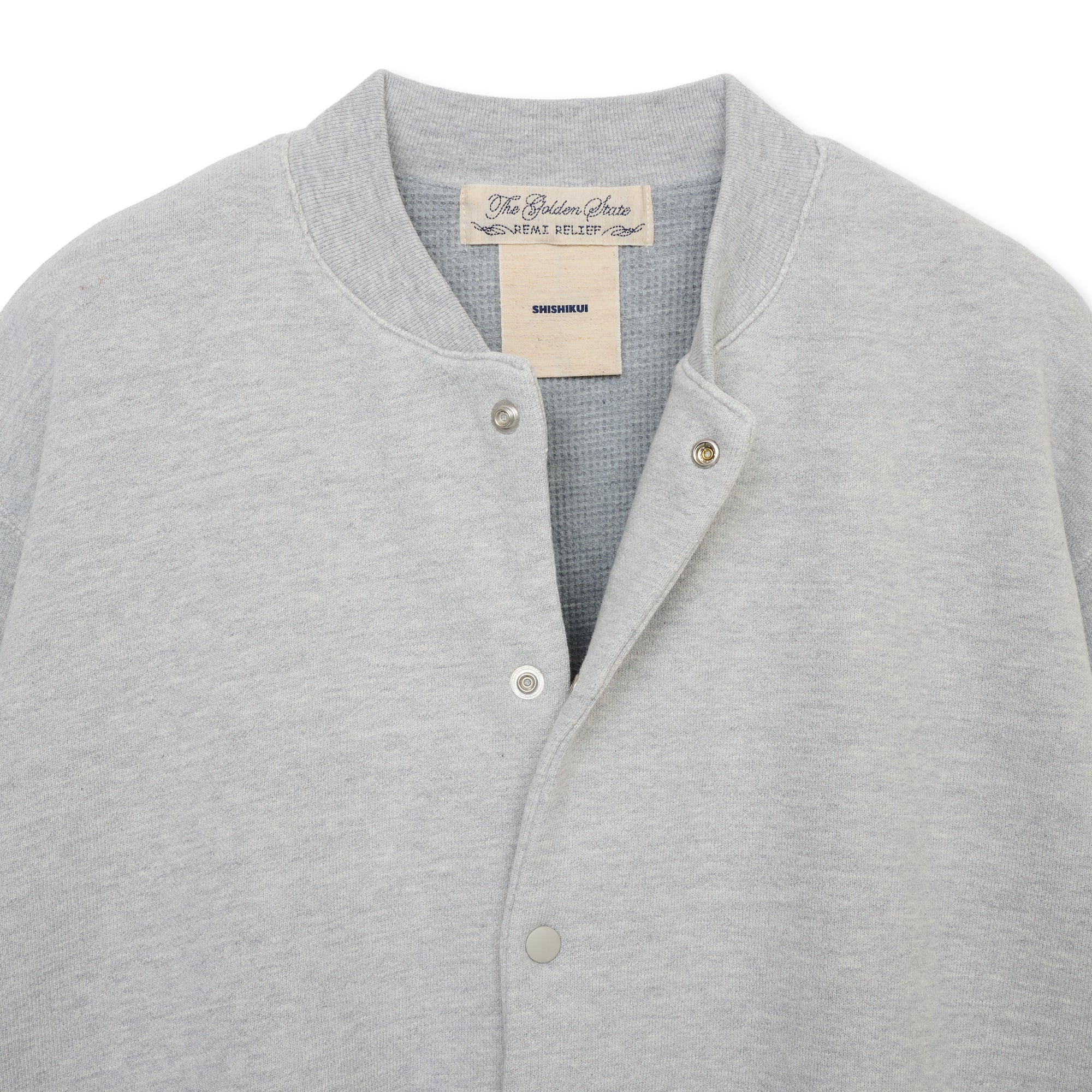 14ゲージのオリジナル素材の裏地に保温性の高いワッフル生地をを使用しています。スウェットですが生地は厚いのでアウターとしても使用出来るスタジャンです。REMI RELIEF独自の加工によりヴィンテージ感を出しています。