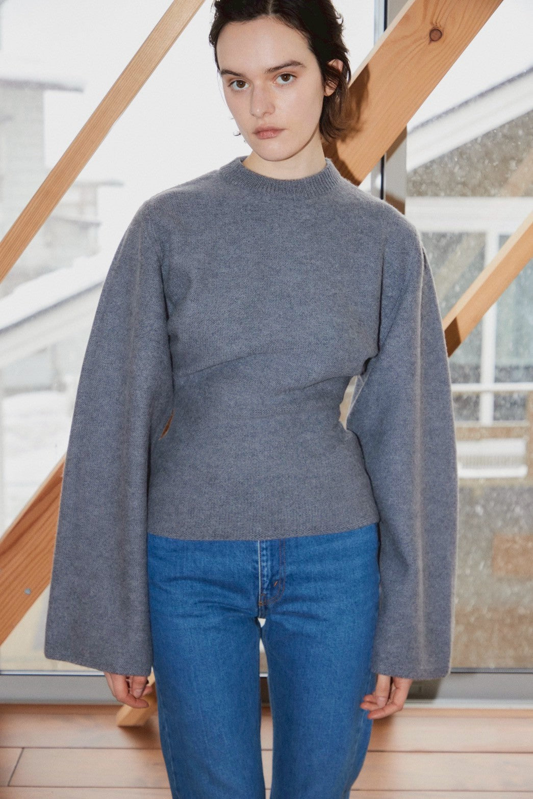 ウエストラインを絞ったデザインのプルオーバーニット。