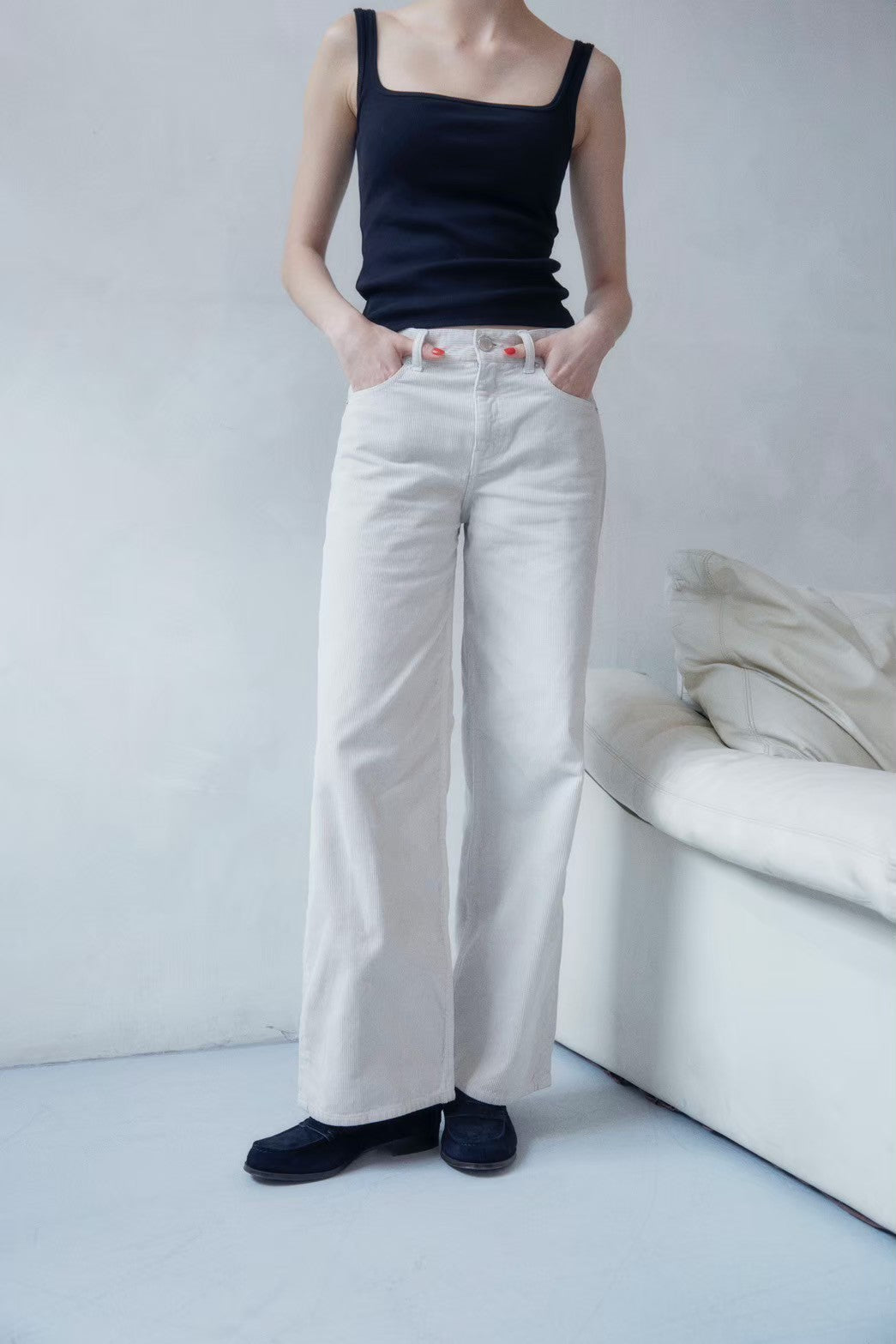 MIDと同じローライズ仕様のコーデュロイパンツ。