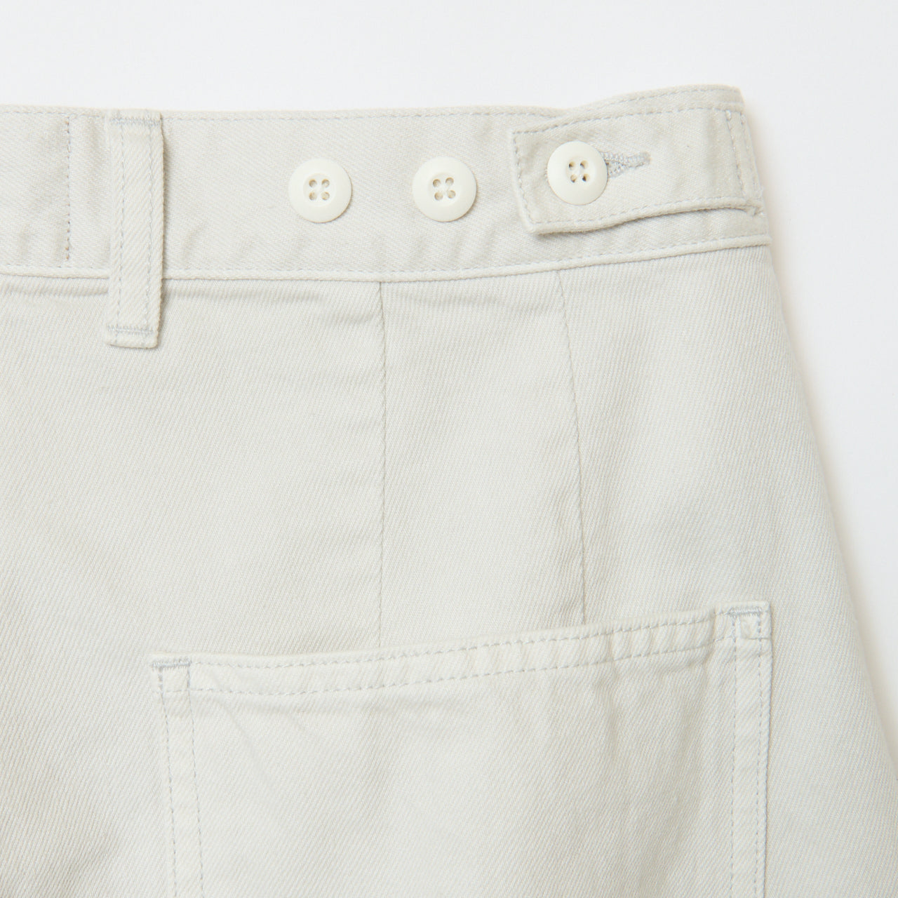 バックウエストにボタンでサイズ調整可能なアジャストベルトがございます。