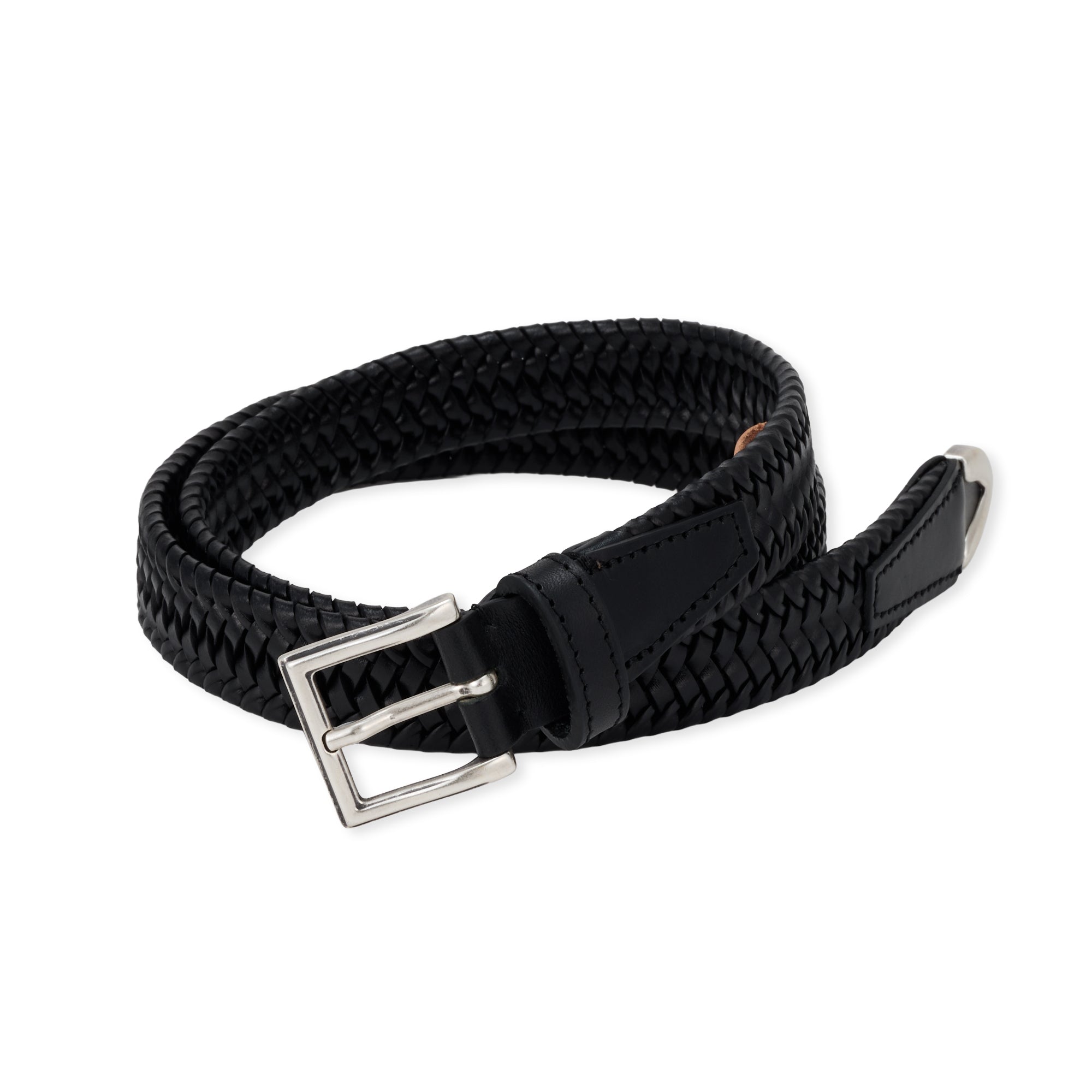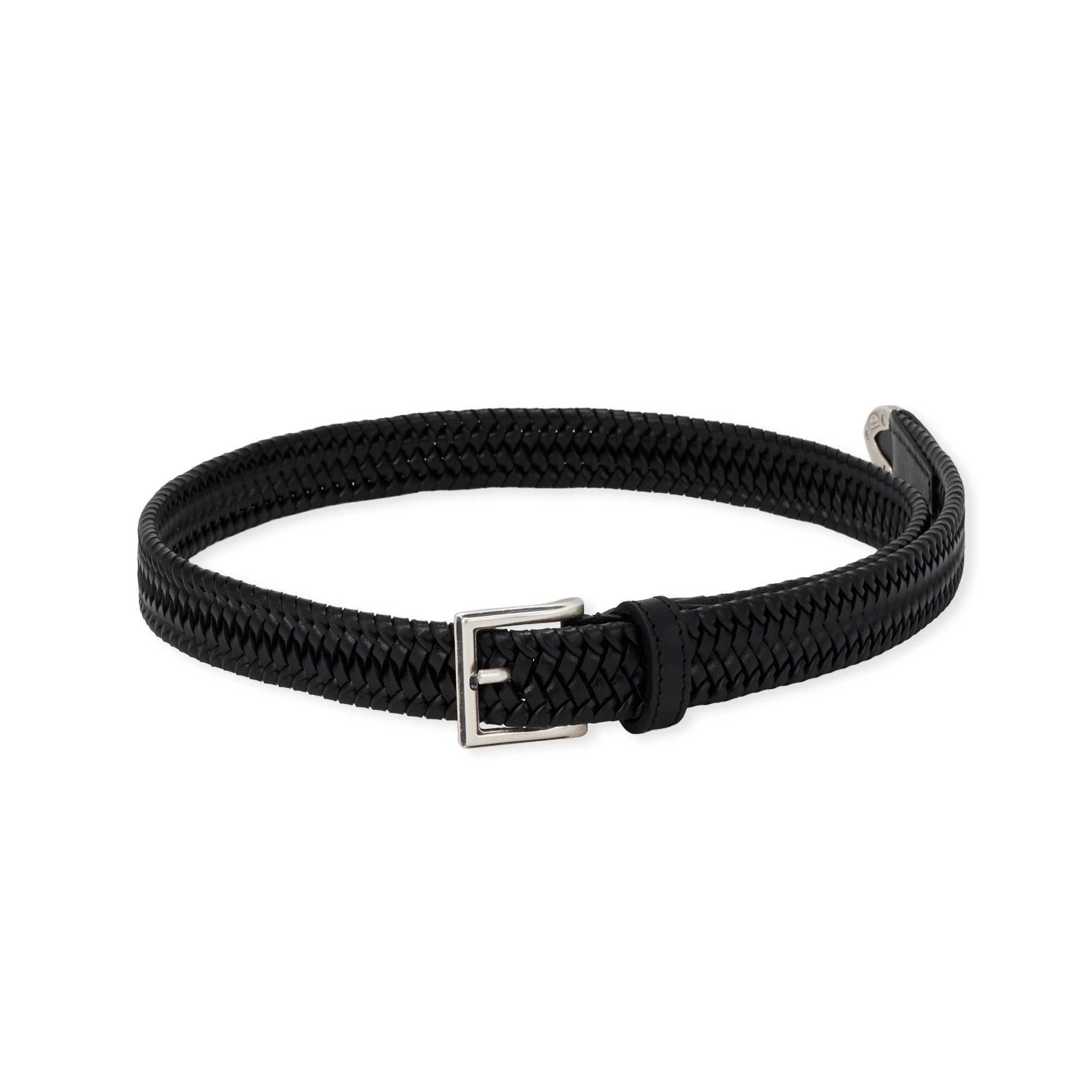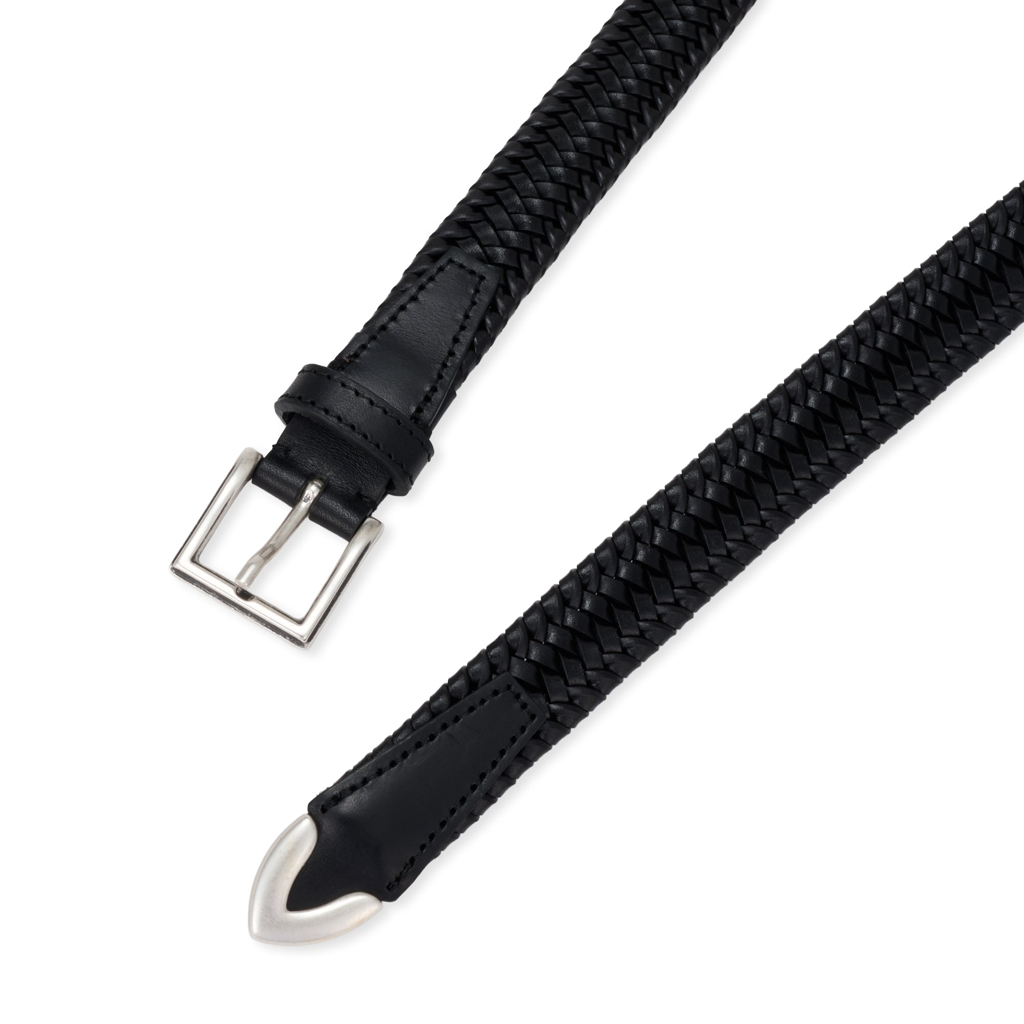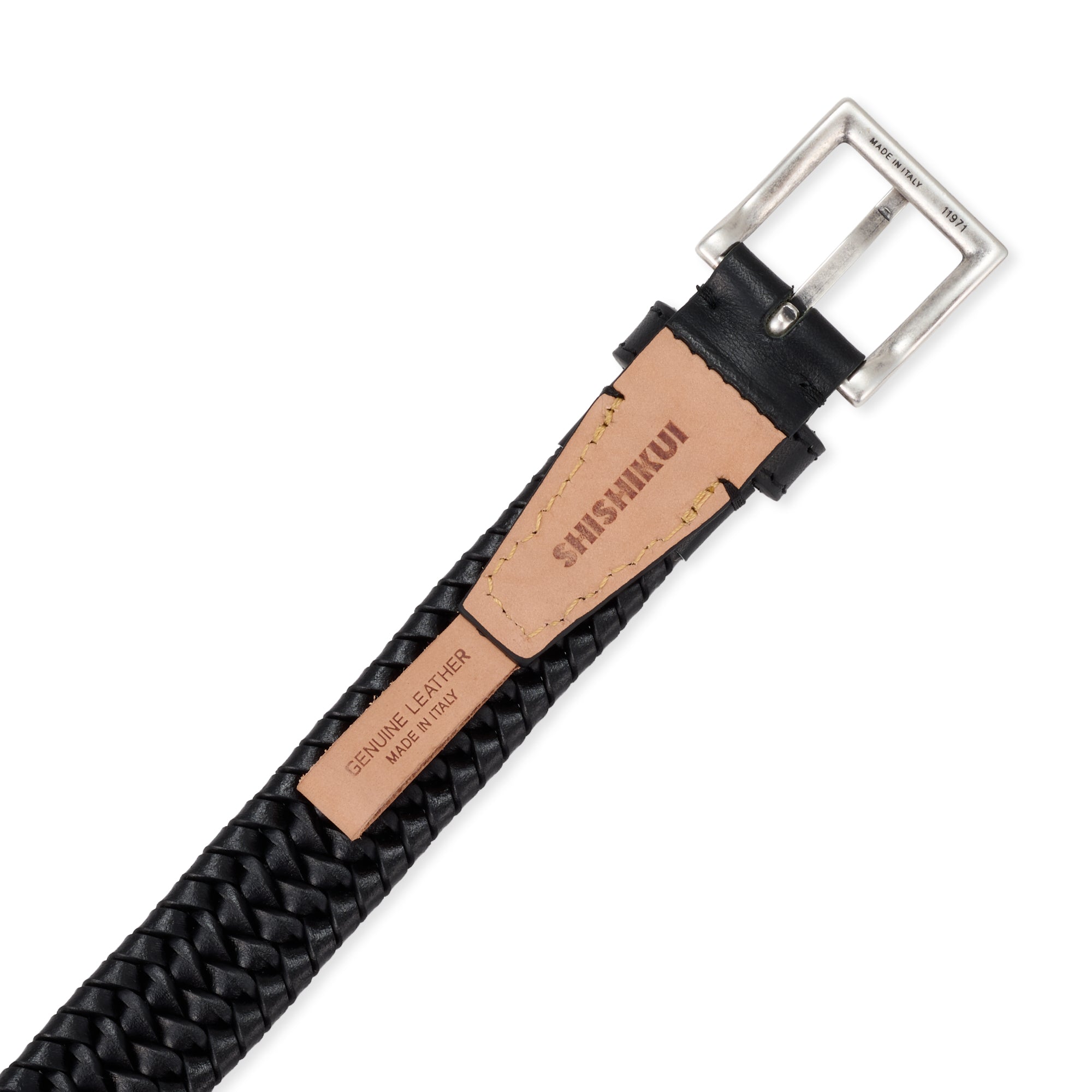 イタリア産のレザーメッシュベルト。メッシュの編み目のどこにでもバックルのピンが通せるのがメリットです。剣先にプレンターレと呼ばれる金具が付いています。