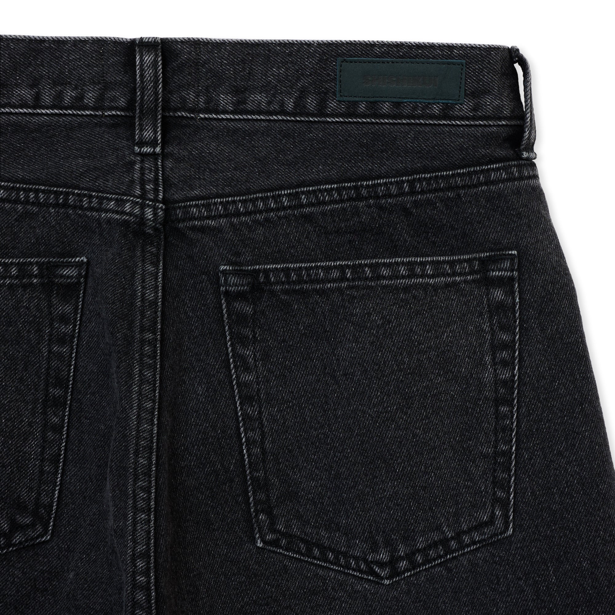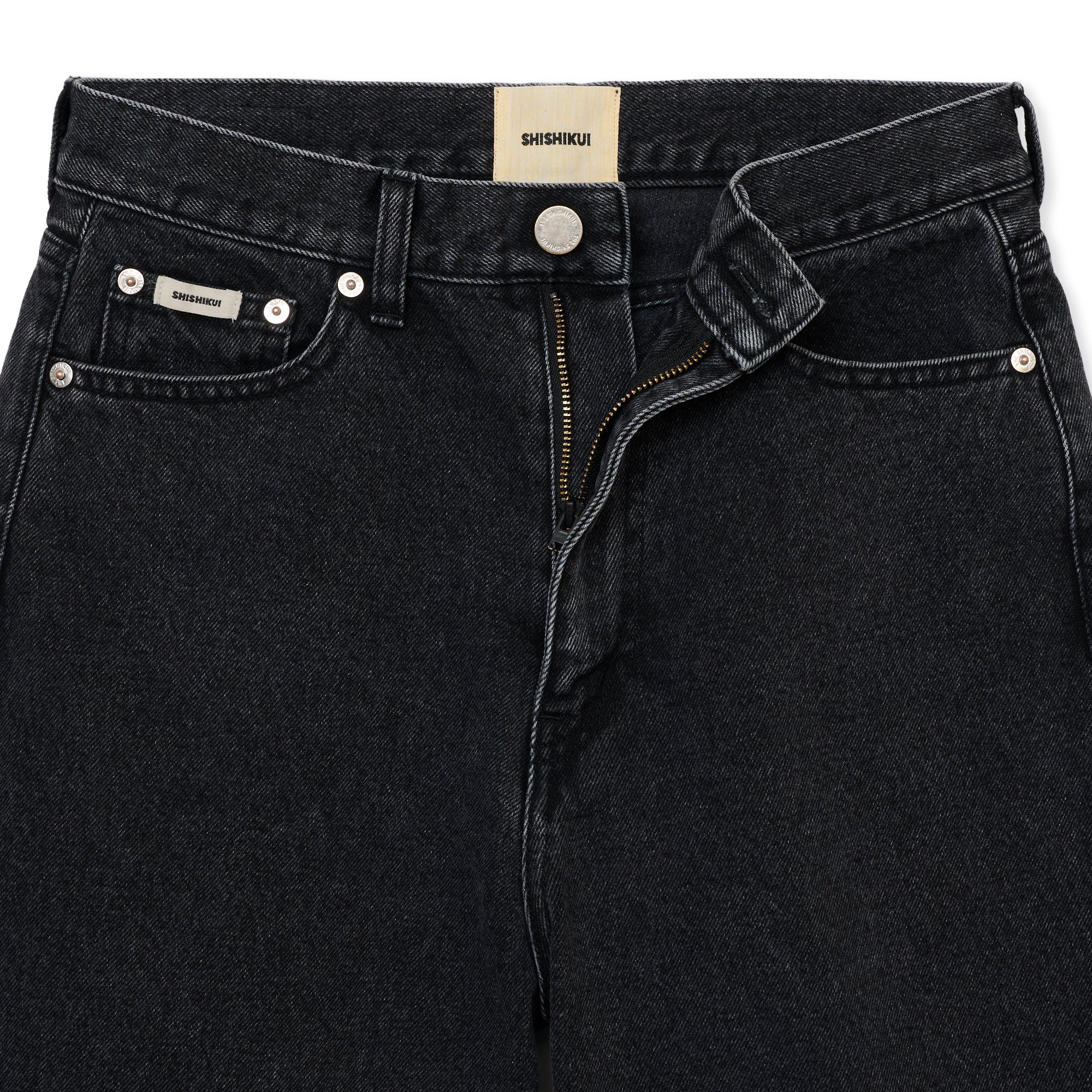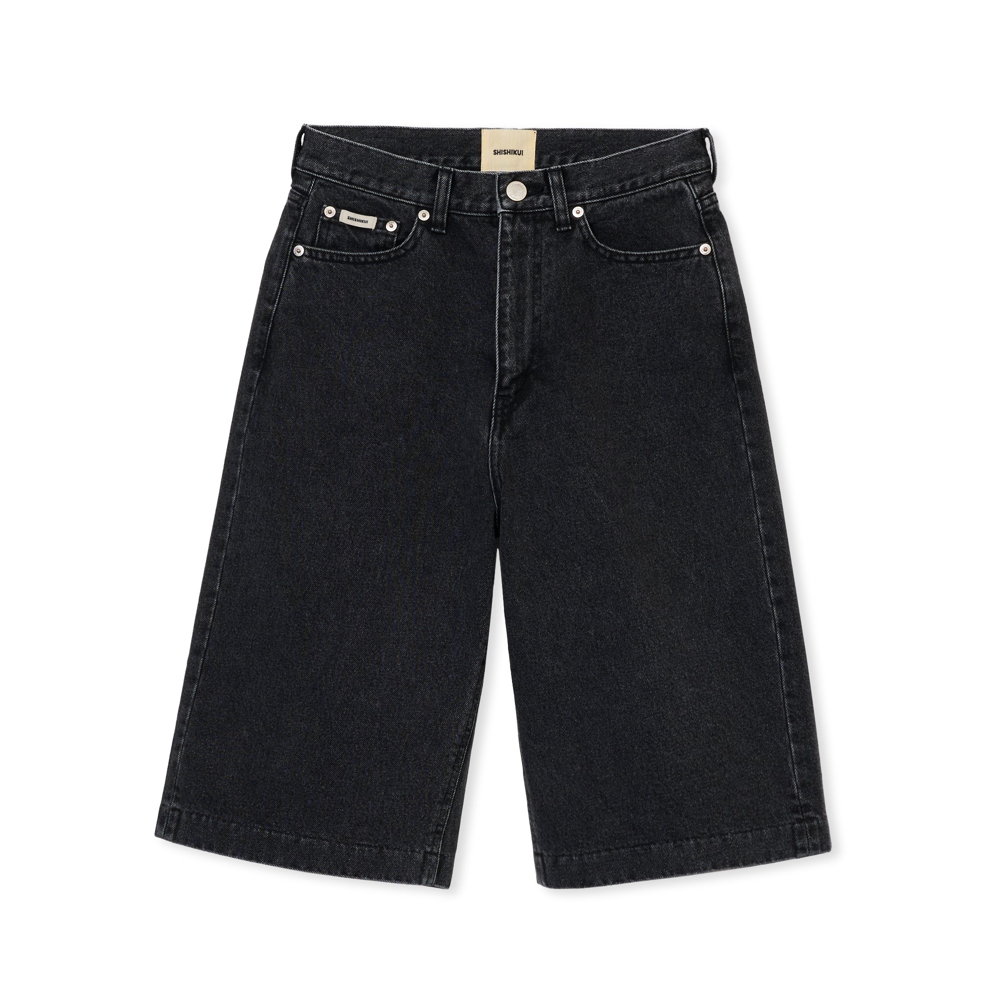 膝下丈のハーフデニムパンツ。裾はBASIC JEANSと同じ仕様で、ステッチを表に出さないように縫製しています。