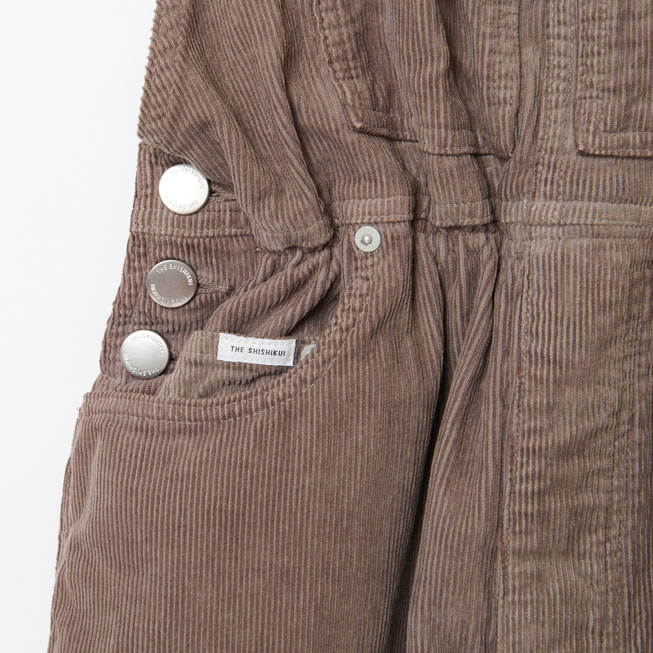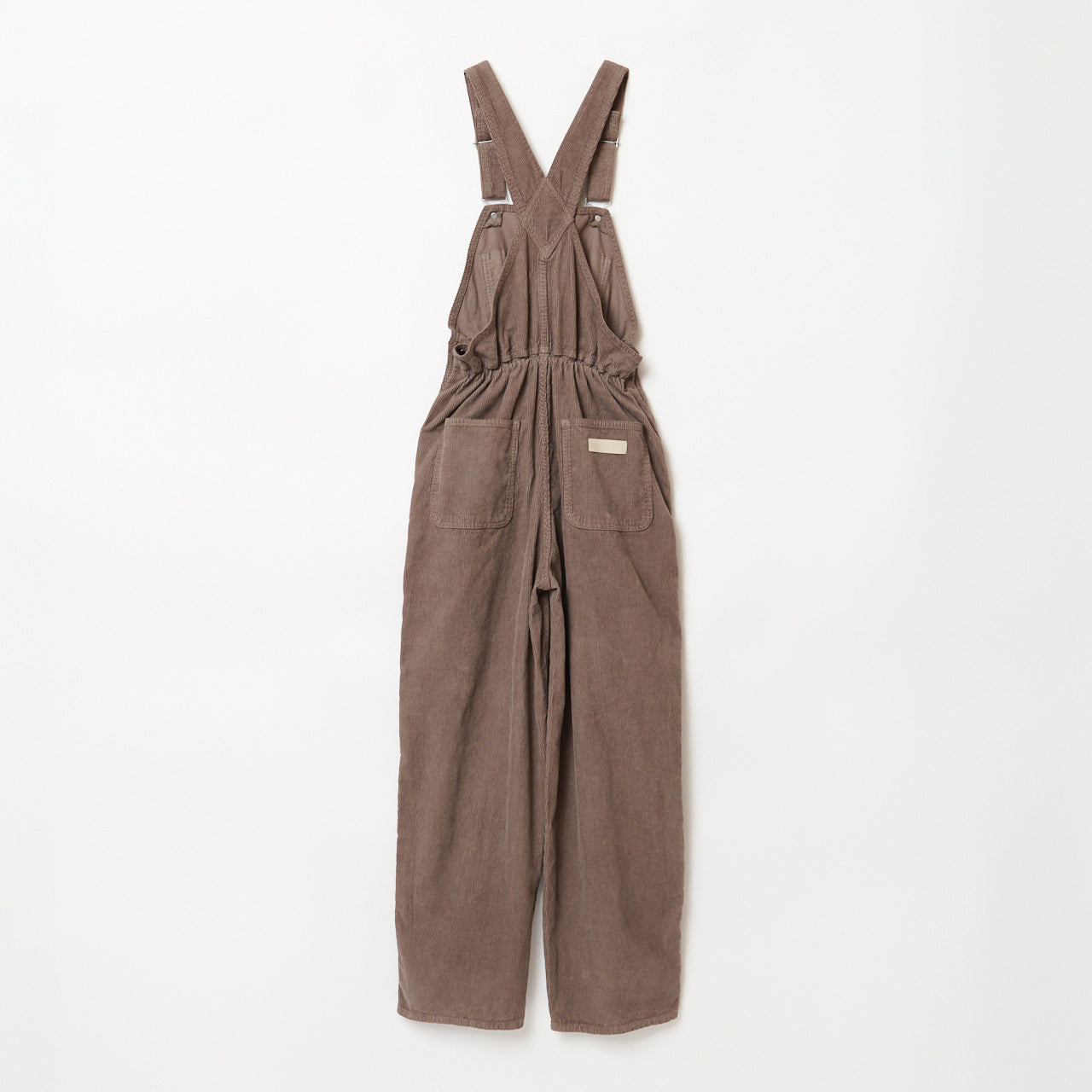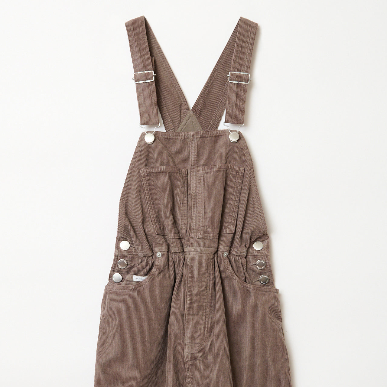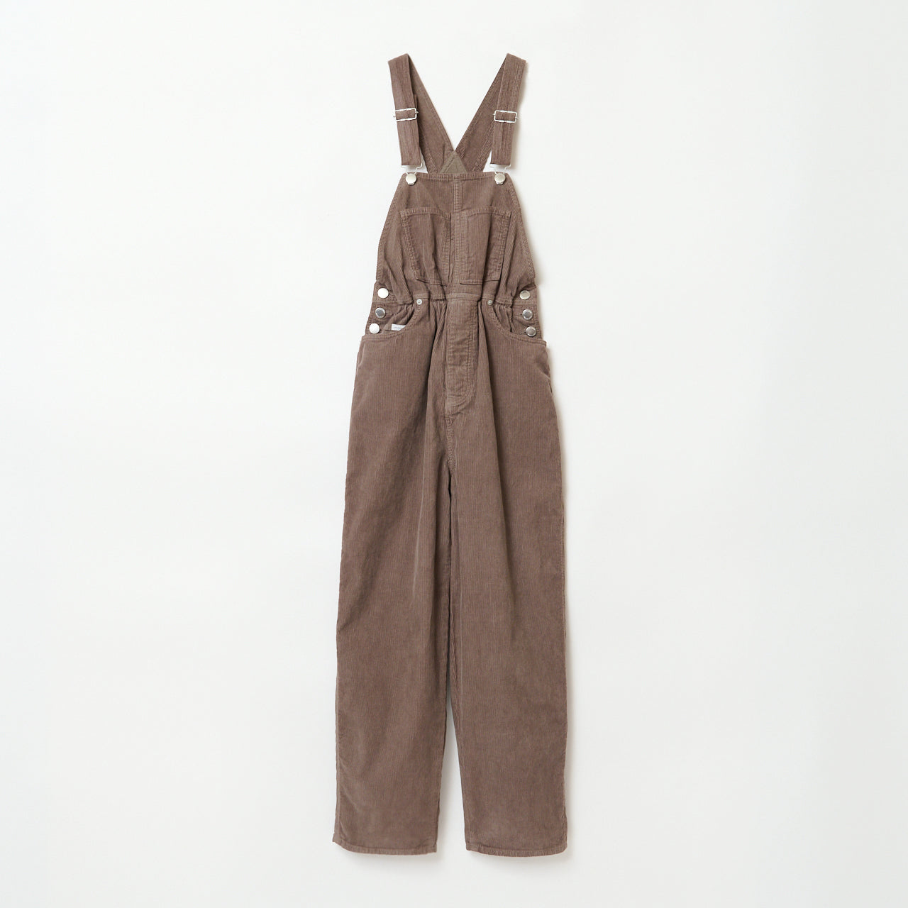 細畝コーデュロイを使用したテーパードシルエットのジャンプスーツ。