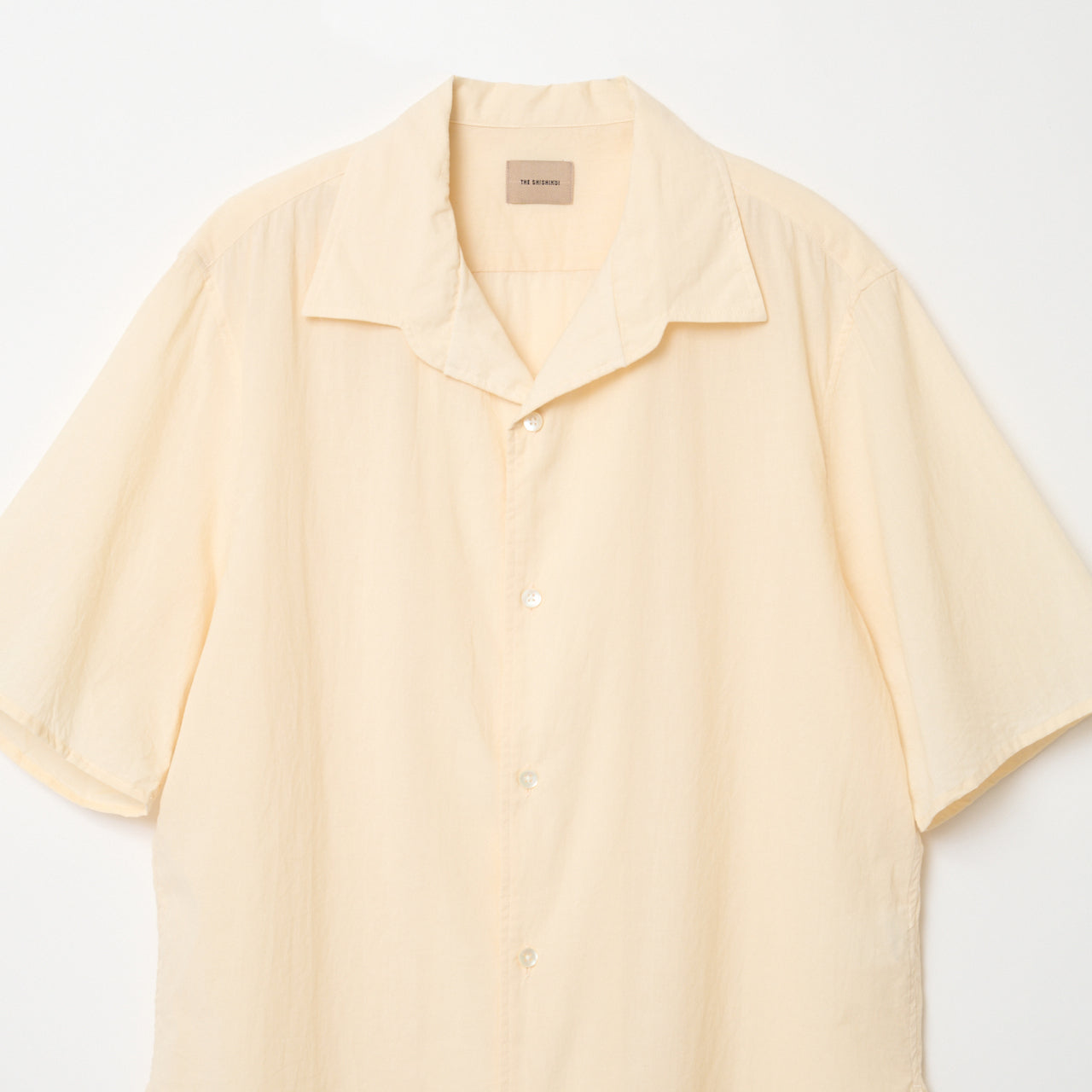 洗い加工によって表情をカジュアルな雰囲気に仕上げた開襟シャツ。