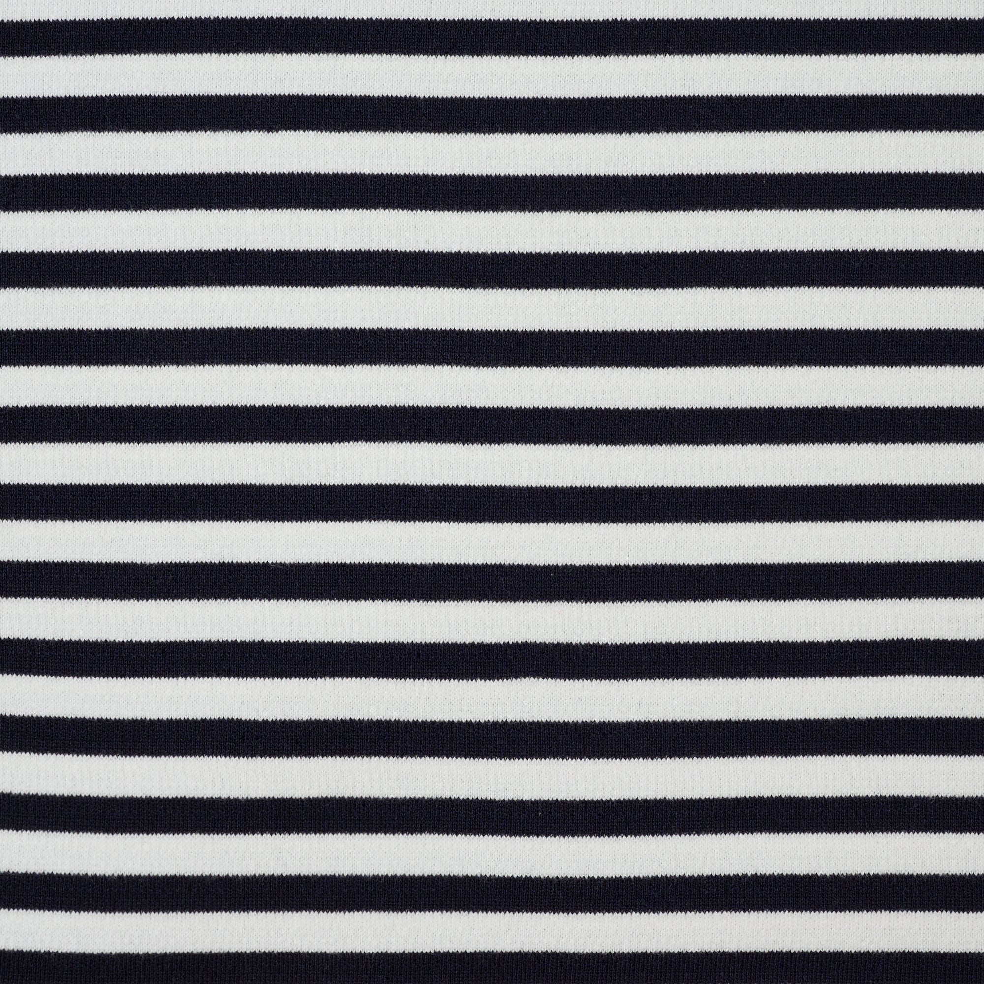伸縮性のあるコットンニット生地を使用したロングボーダートップス。ウエストラインをタイトに絞ったシルエットです。