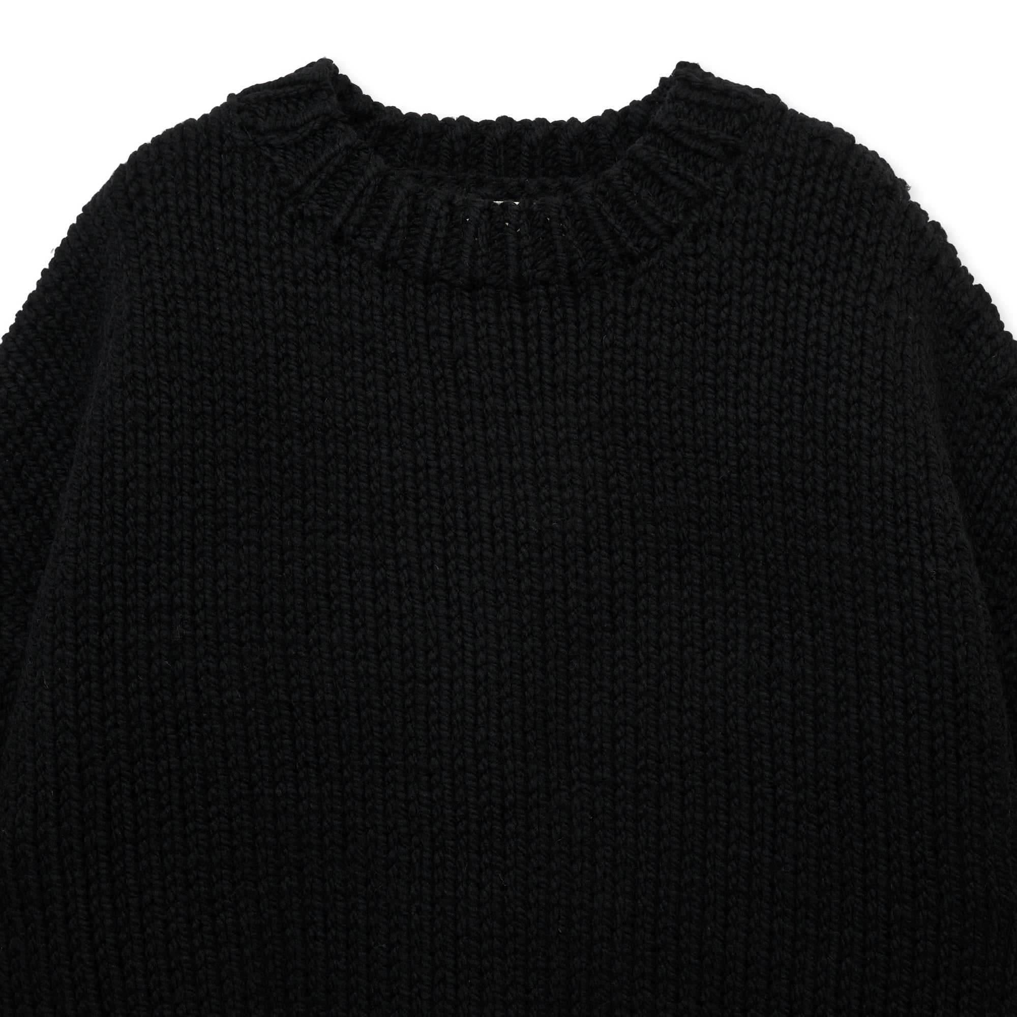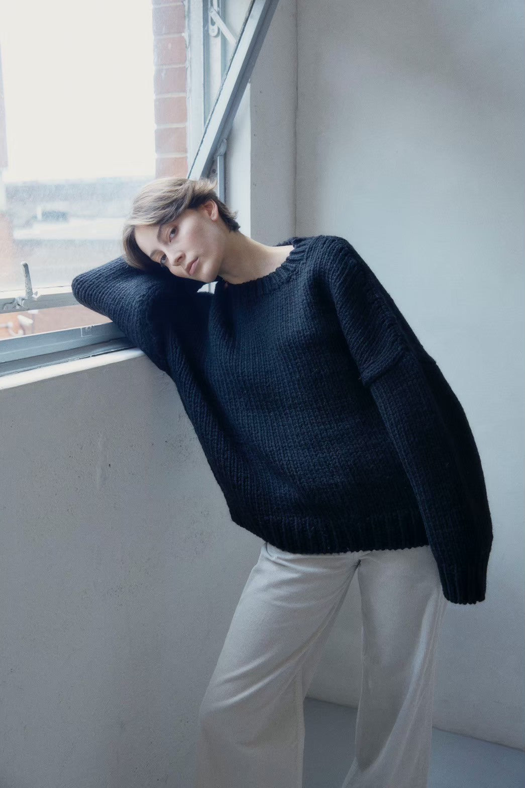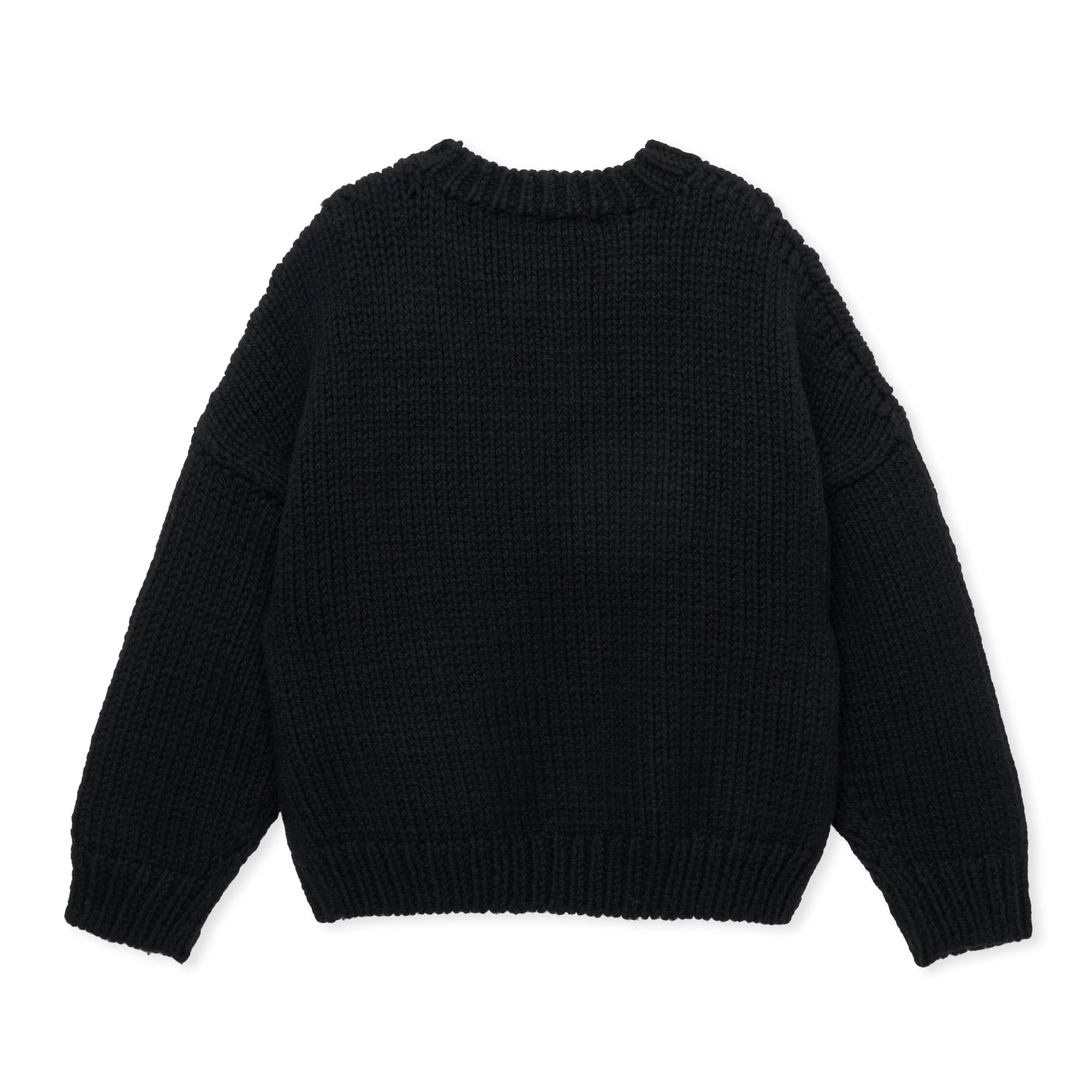 大きめなゲージで編み上げた、メンズライクなオーバーシルエットのニットです。