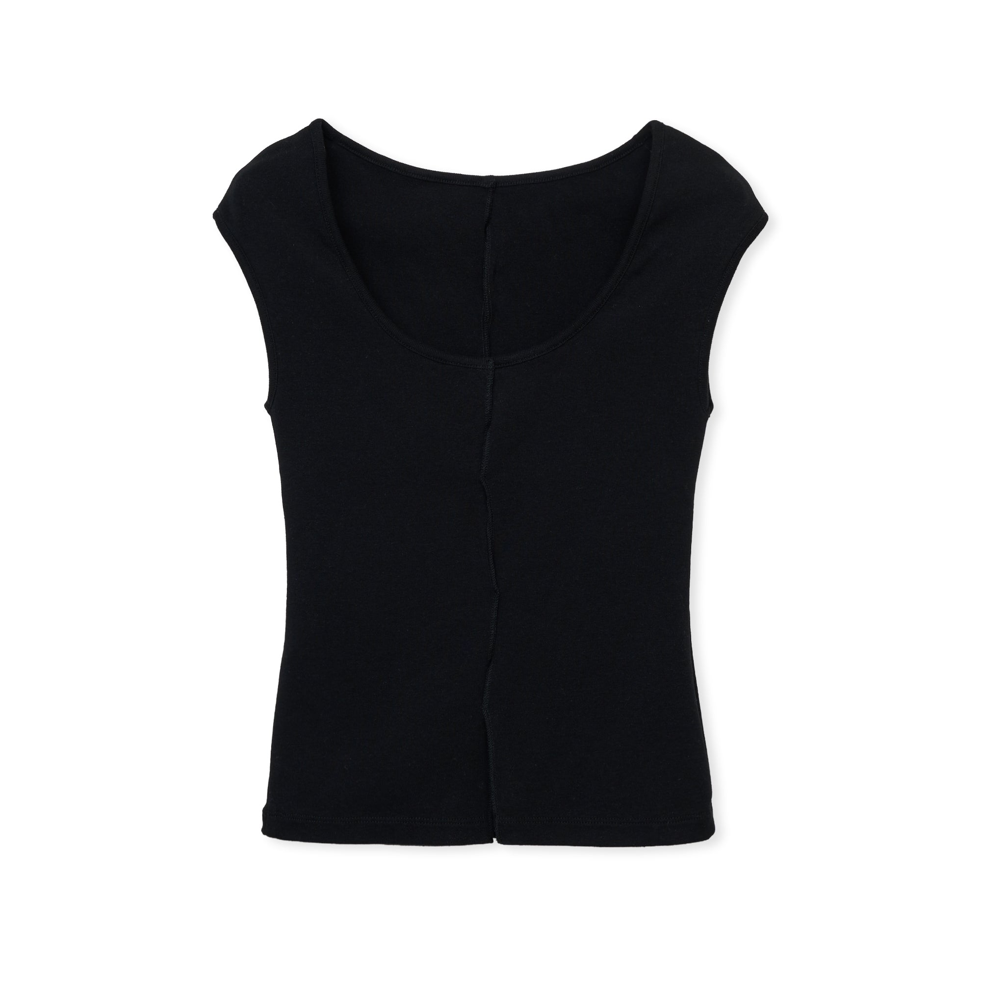 ■返品不可・交換不可・キャンセル不可■ギフトラッピング不可前見頃・後ろ見頃にカッティングデザインを施したトップス。前後どちらでもご着用いただけます。薄手の極細畝リブ生地を使用しています。*モデルカットはWHITEを着用しています。【サイズ】Free身幅:34cm着丈:48cm*伸縮性のある素材の為多少の誤差はご了承ください。
