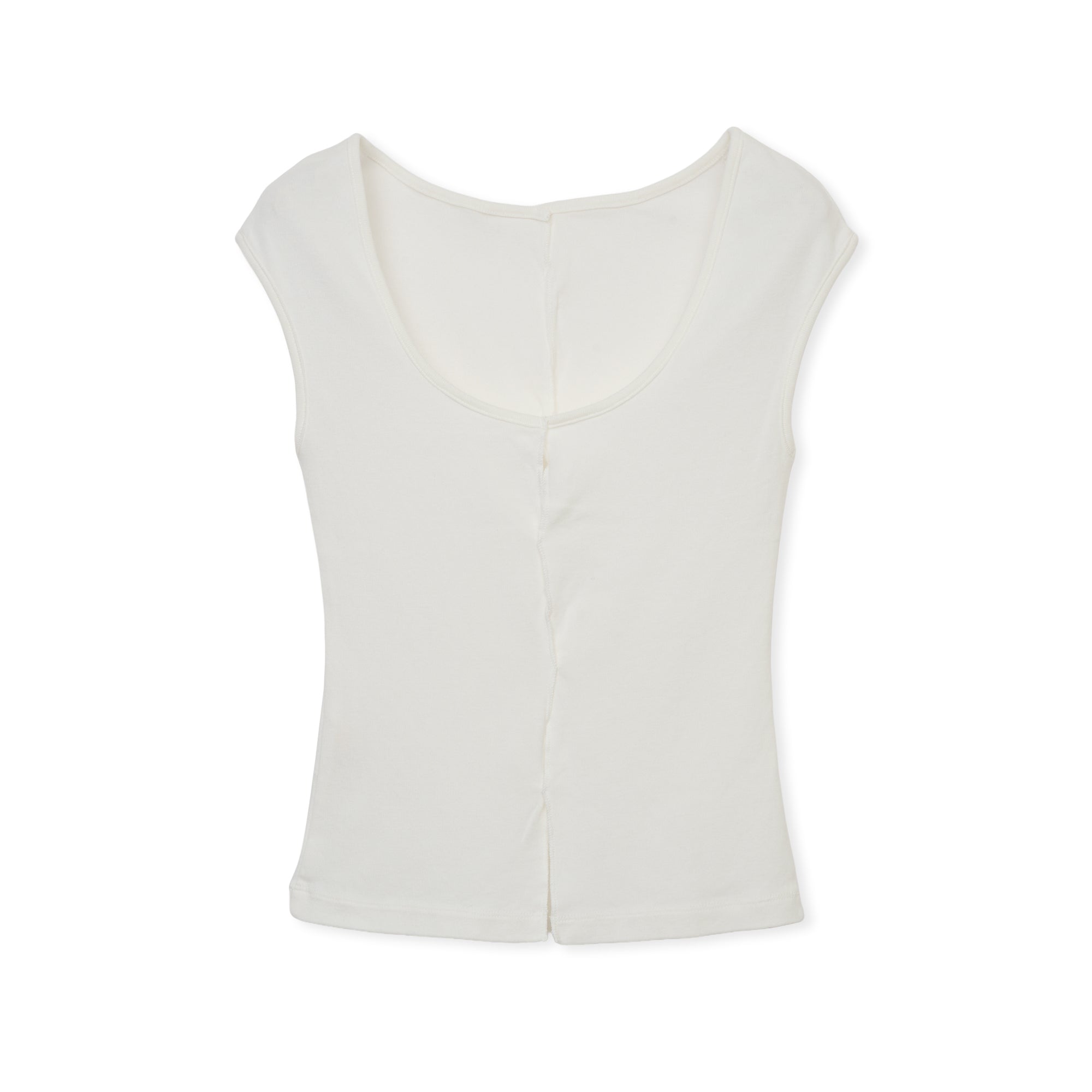 前見頃・後ろ見頃にカッティングデザインを施したトップス。
