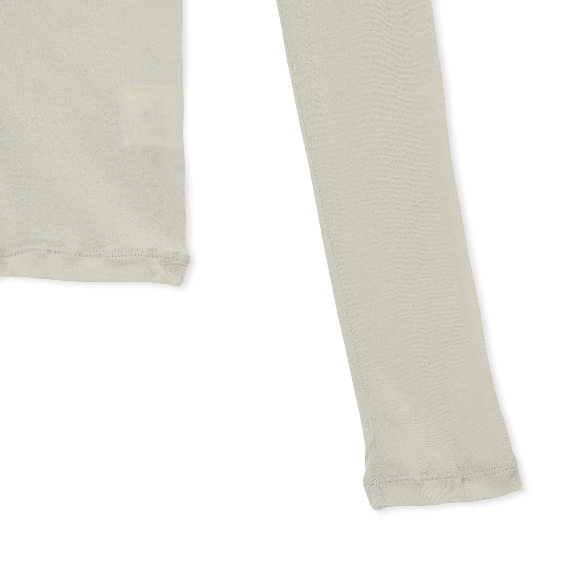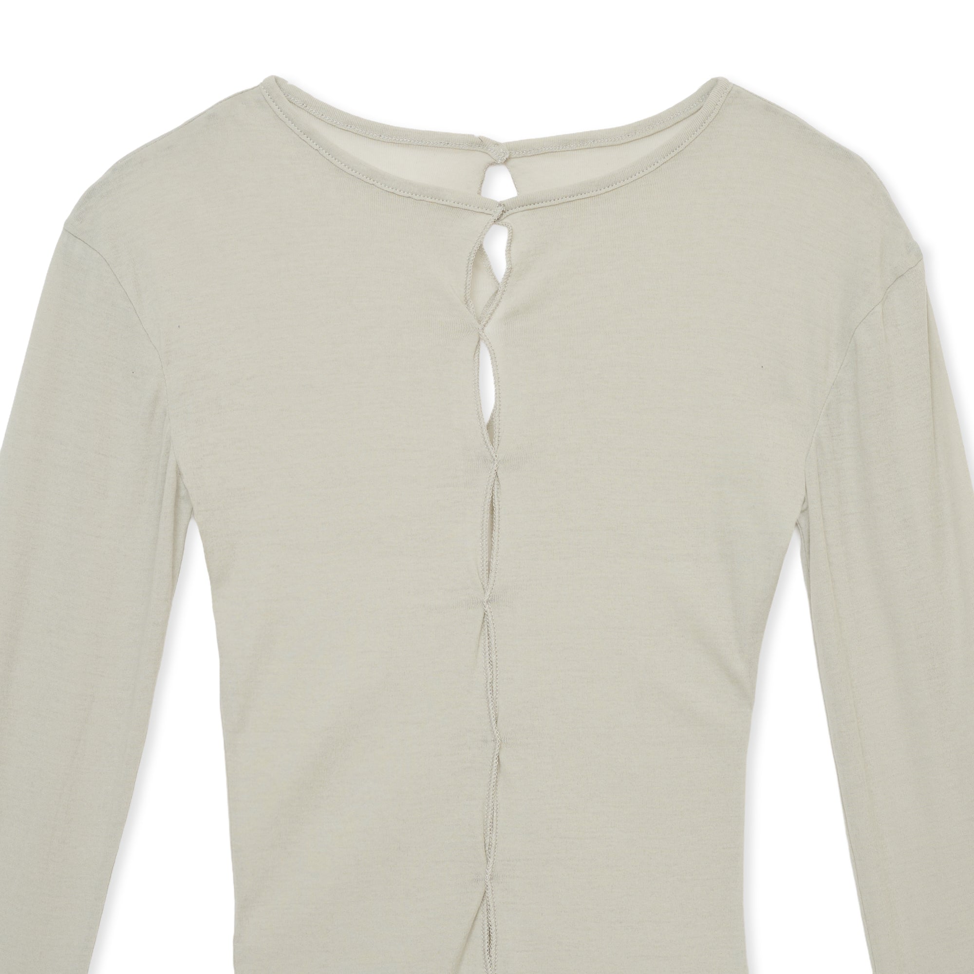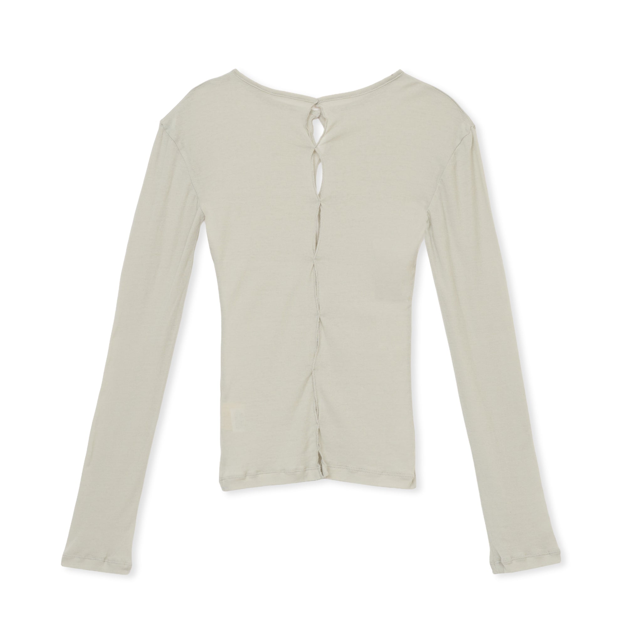 前見頃・後ろ見頃にカッティングデザインを施したトップス。透け感のあるドライな肌触りの薄手コットン生地を使用。