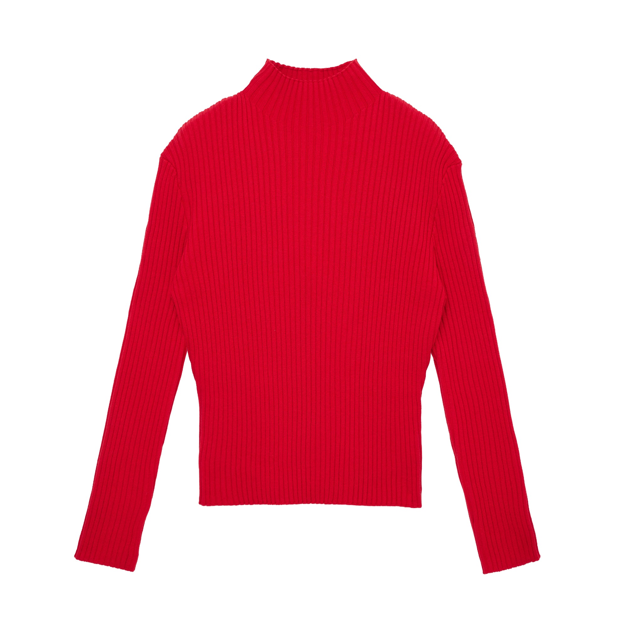 ハイネック、ストレートシルエットのプルオーバーリブニット。