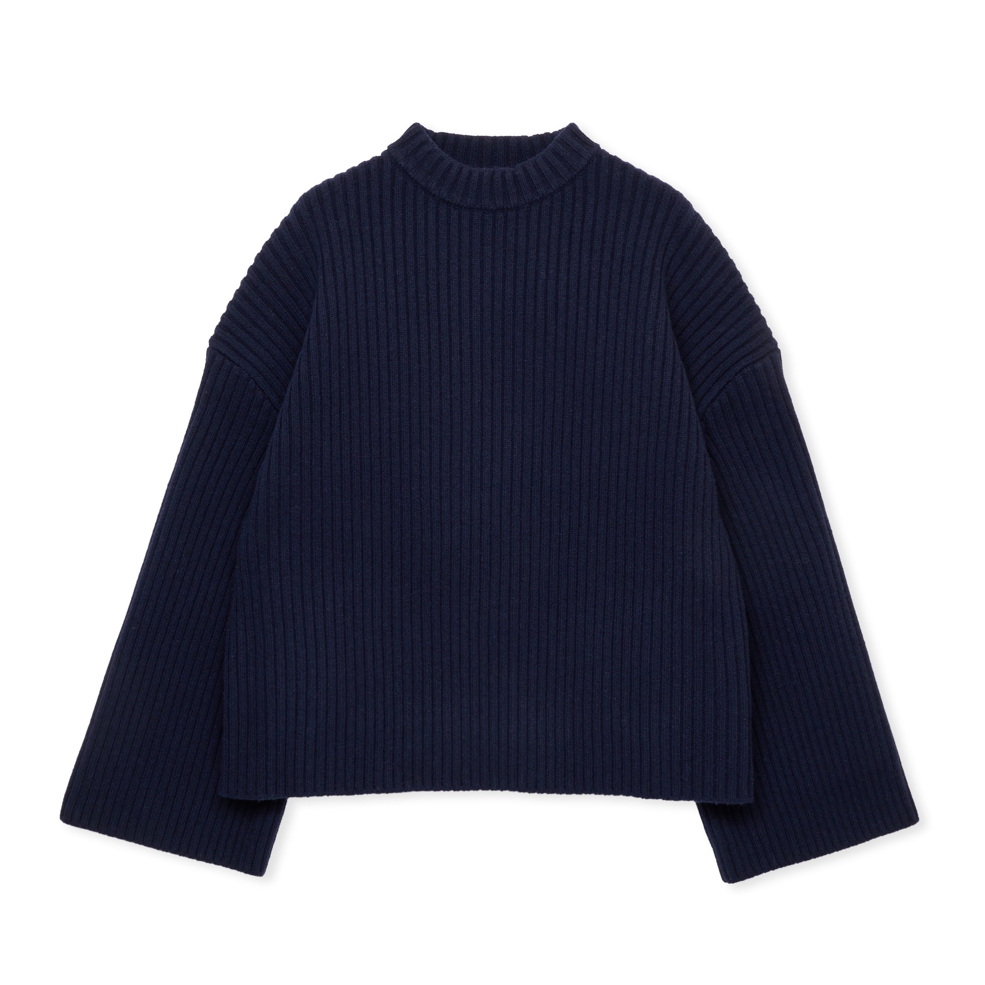 たっぷりとしたシルエットでボリュームのあるリブニット。