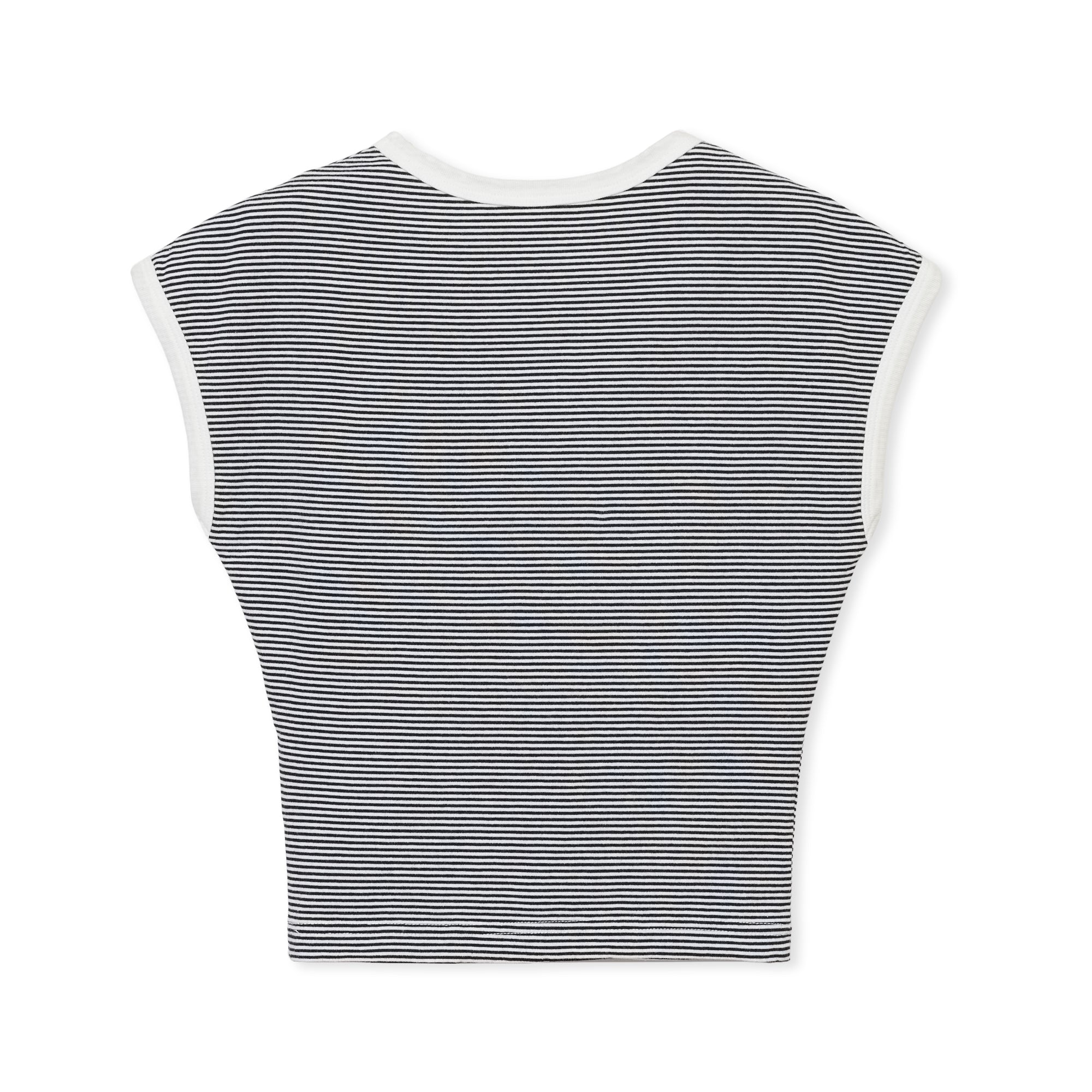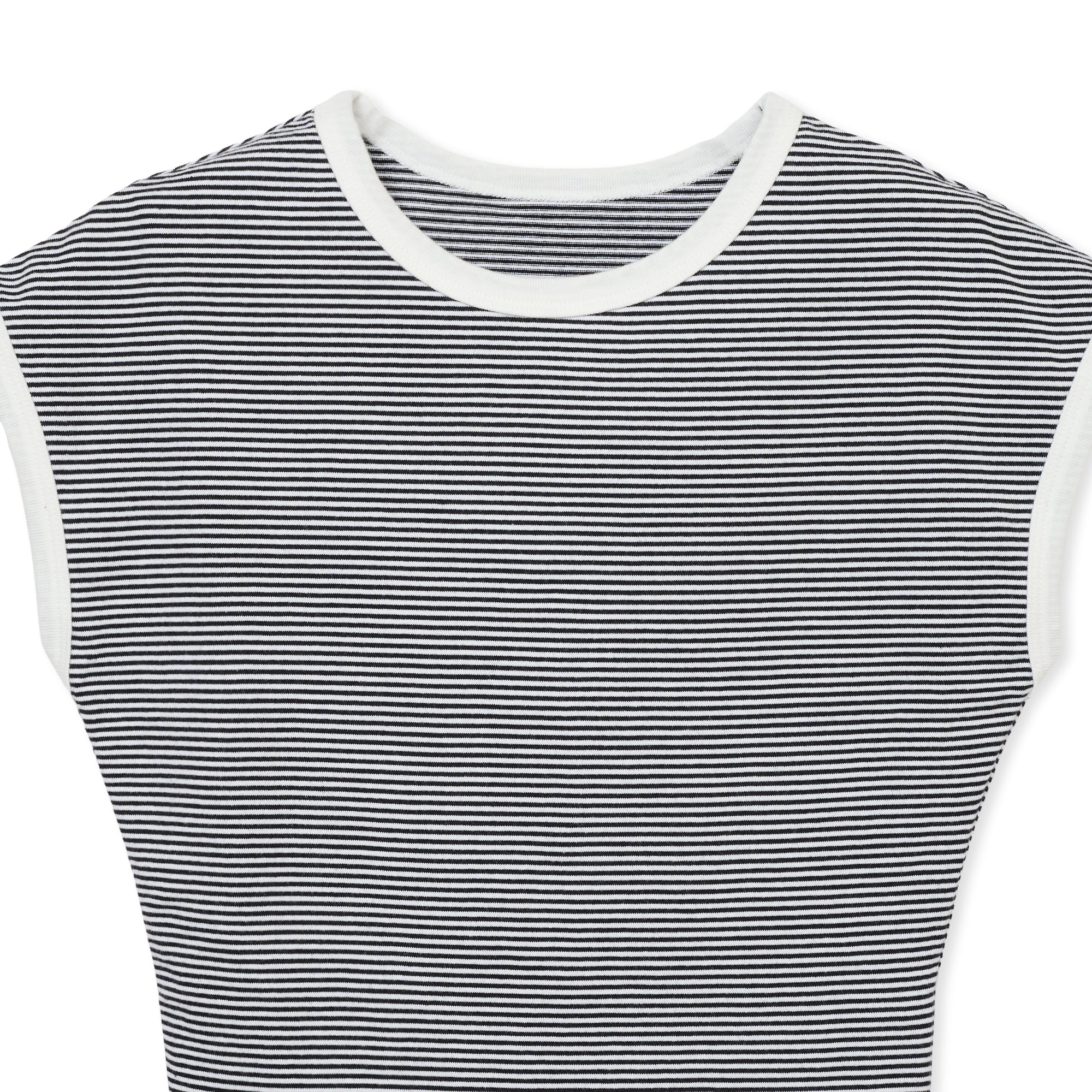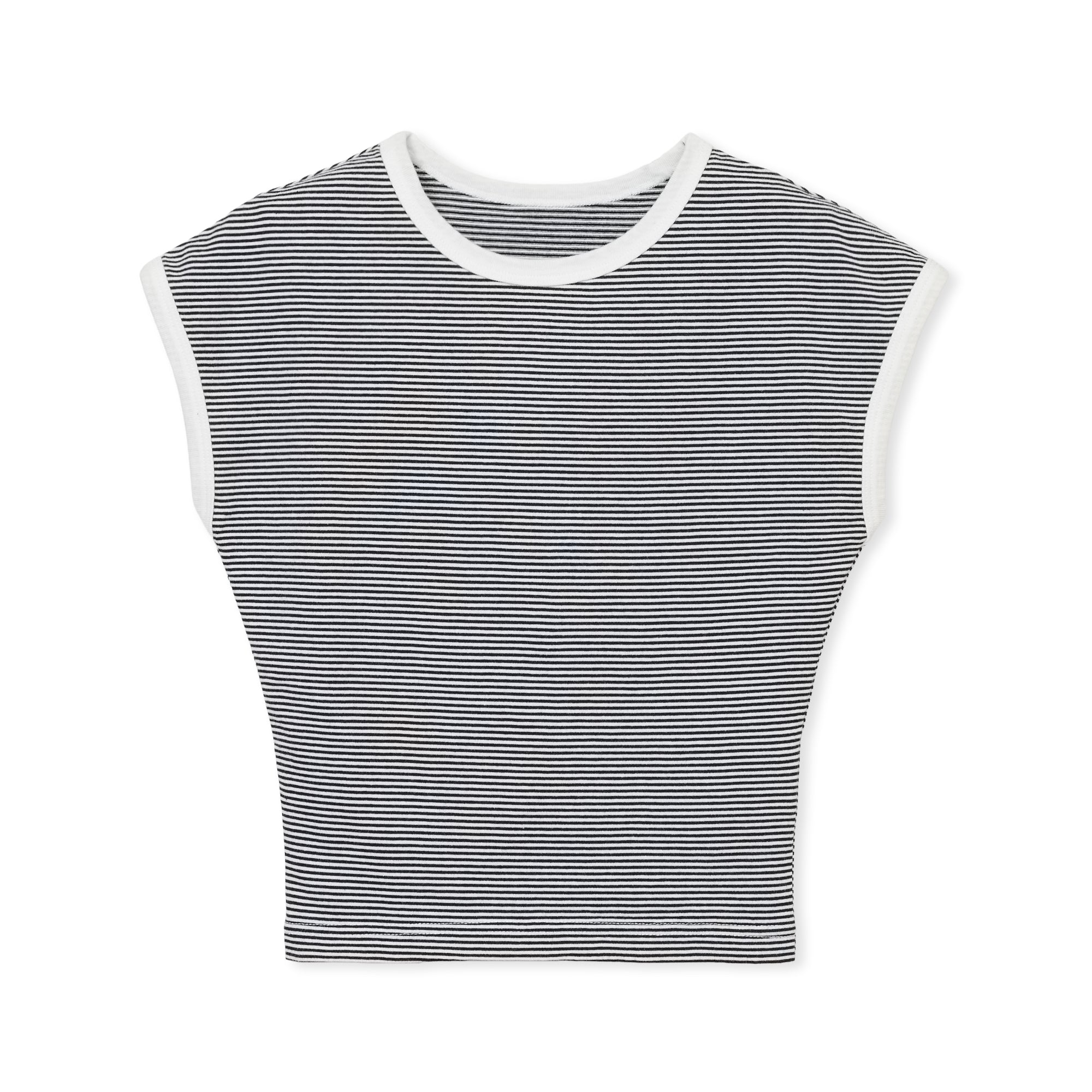 タイトシルエットのボーターカットソー。ウエストに向かって絞ったシルエットです。モデル画像はNV×WHを着用しています。
