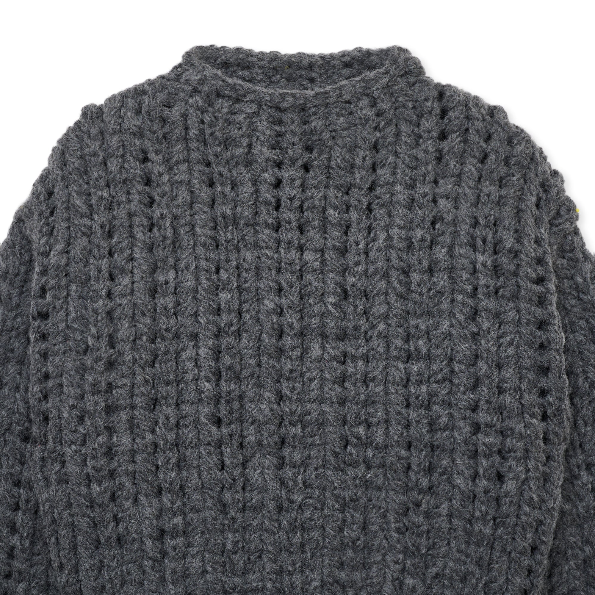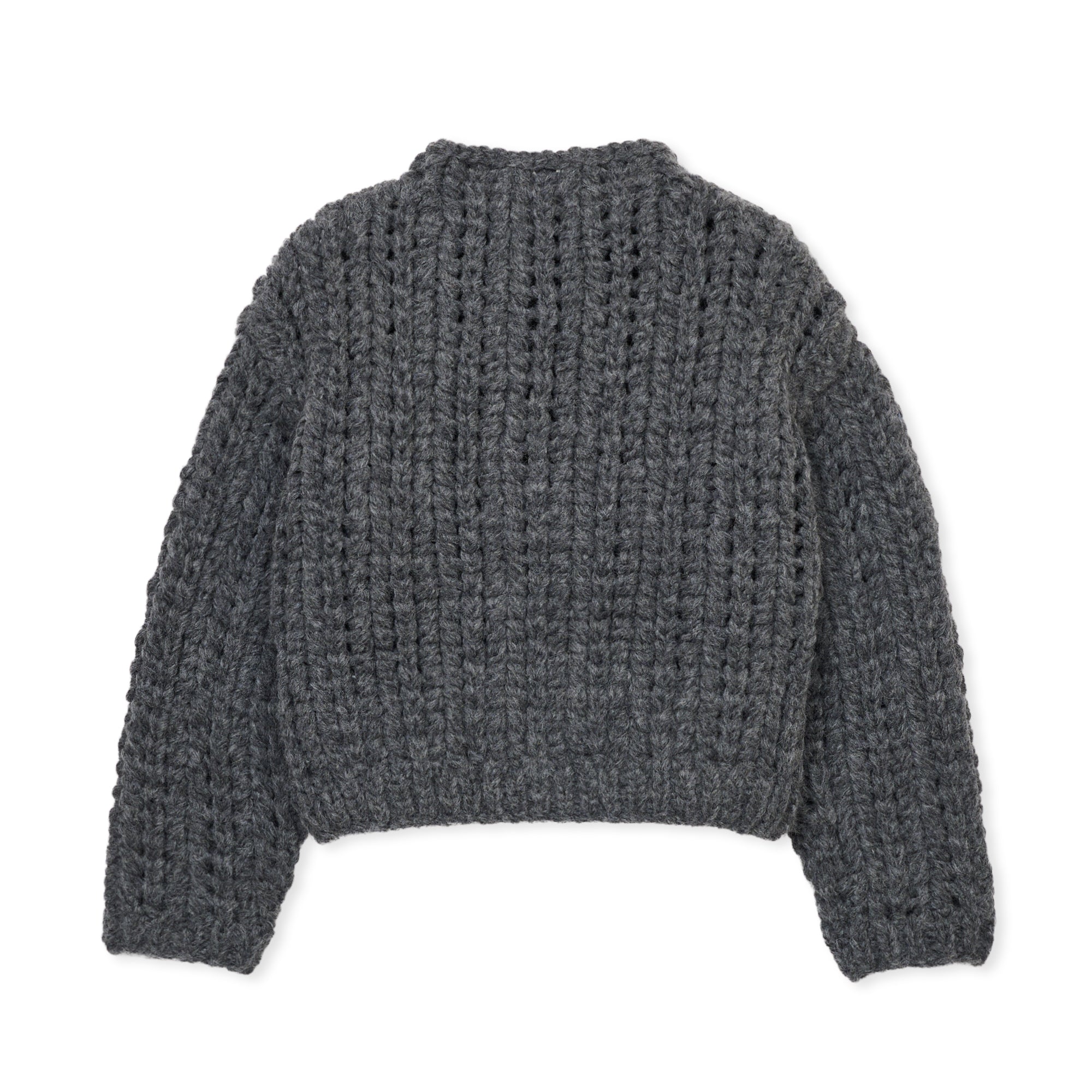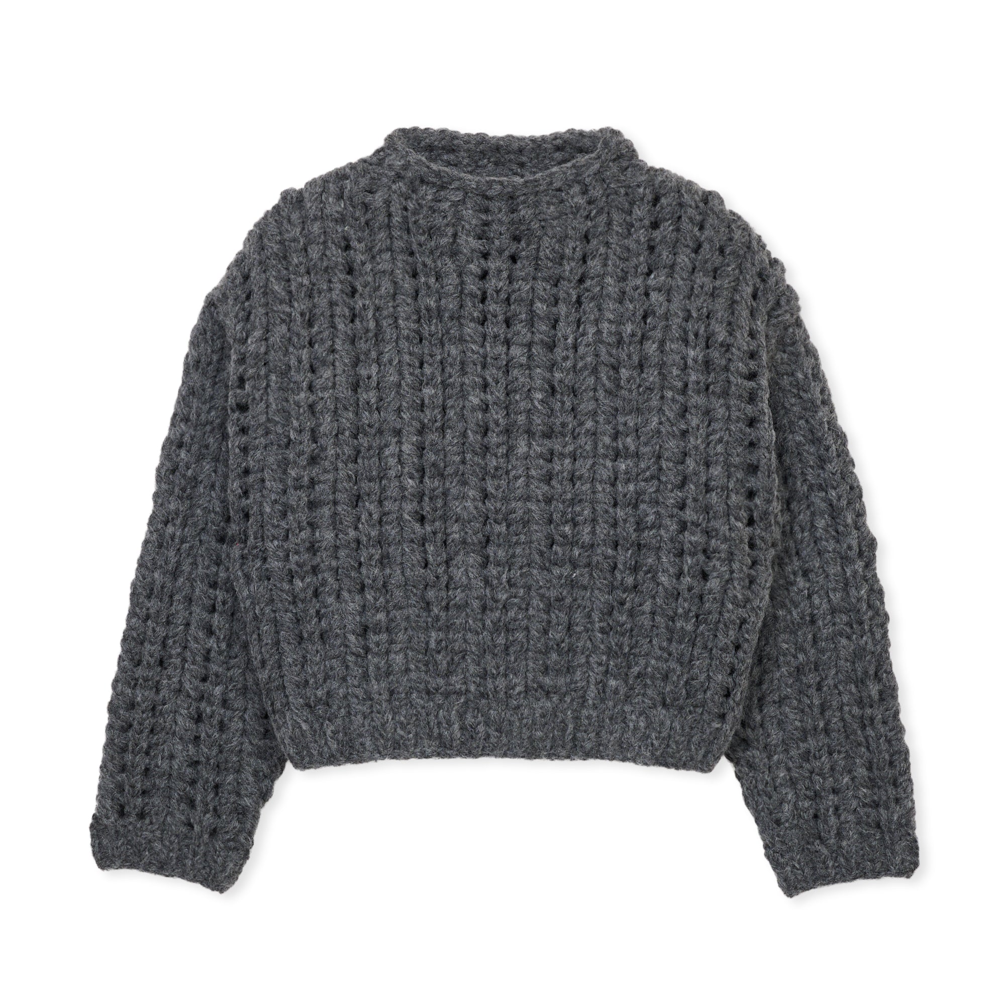 アルパカ混ウール糸を編み上げたショート丈プルオーバーニット。