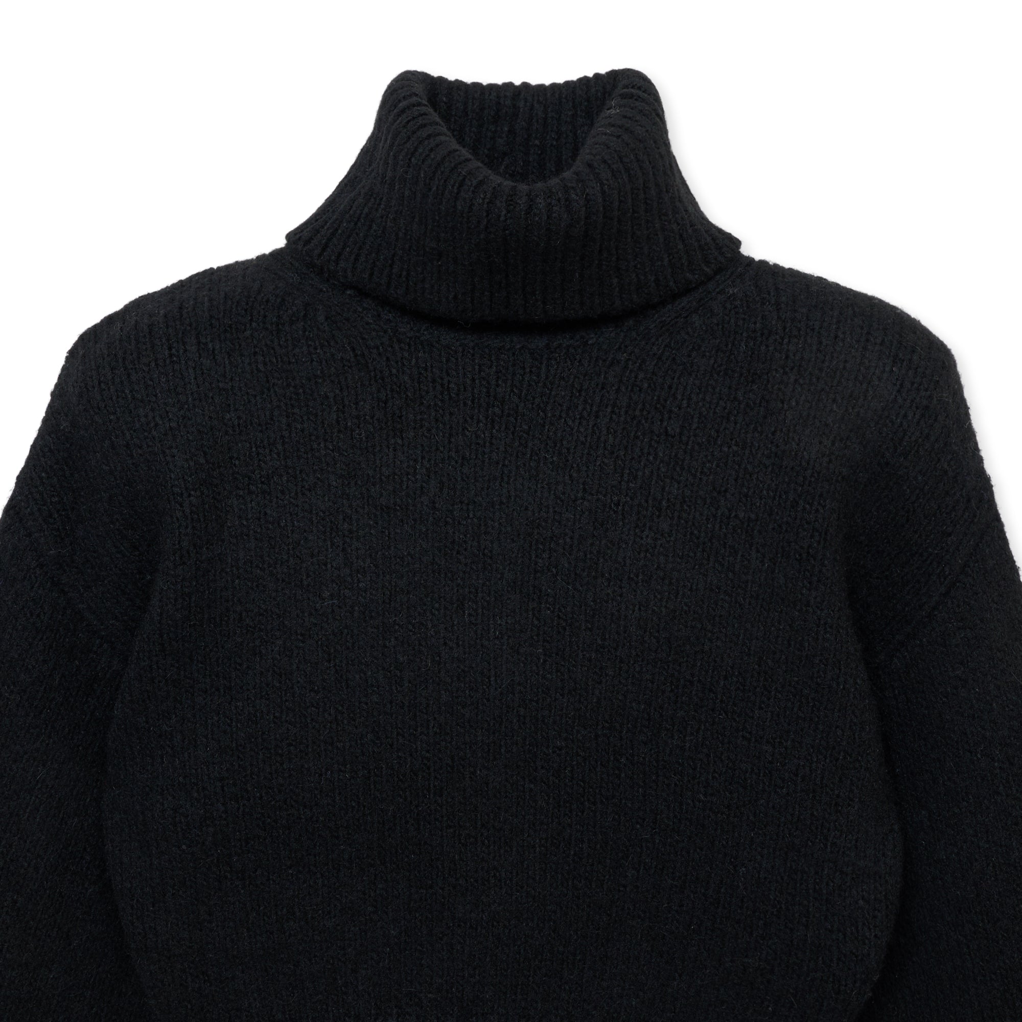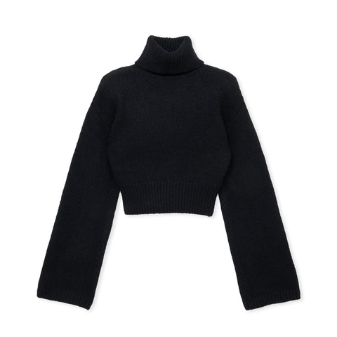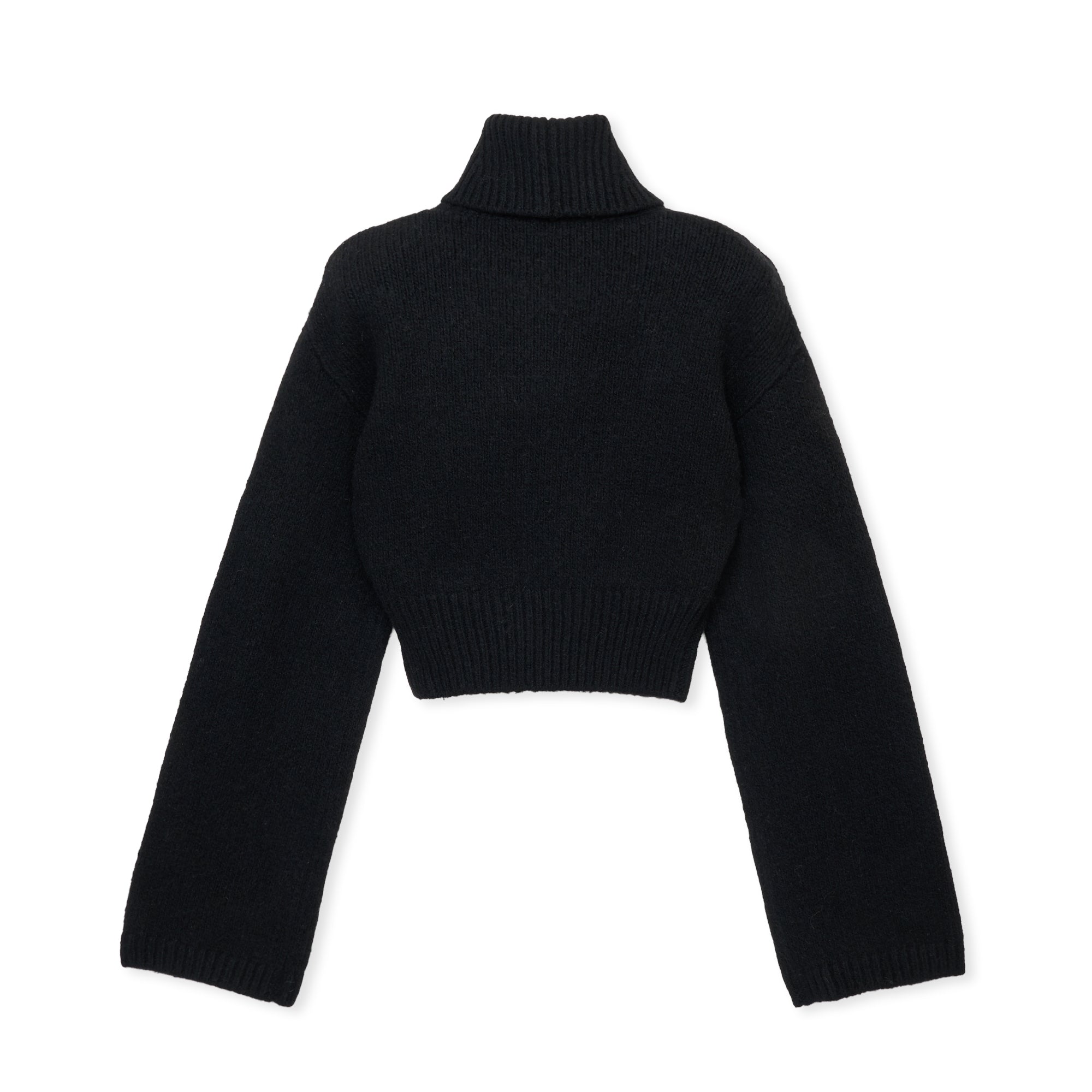 取り外し可能な肩パッド付きタートルネックニット。