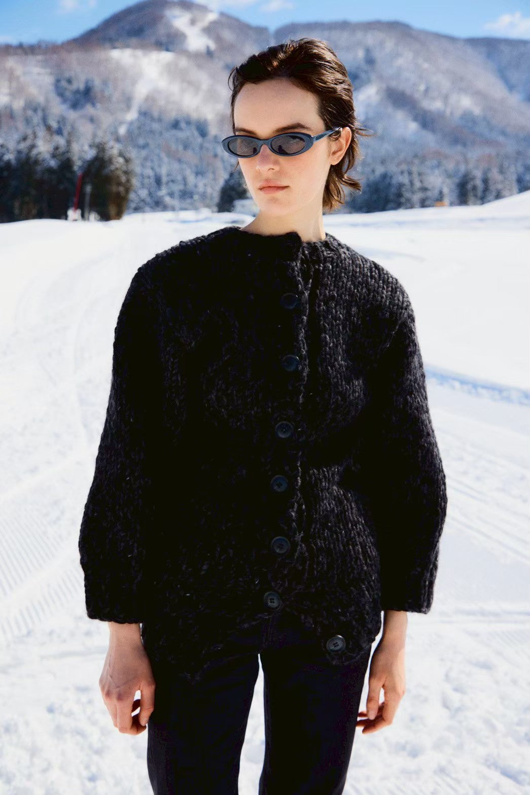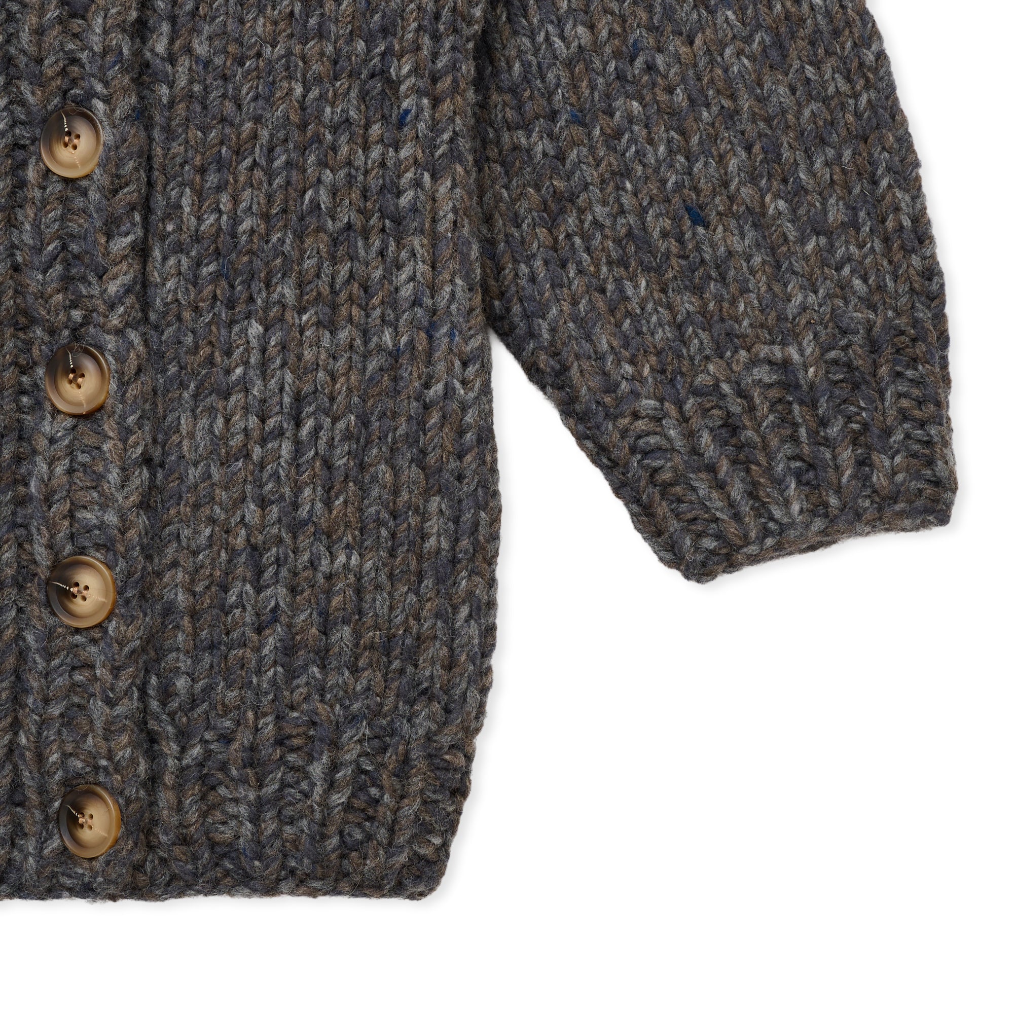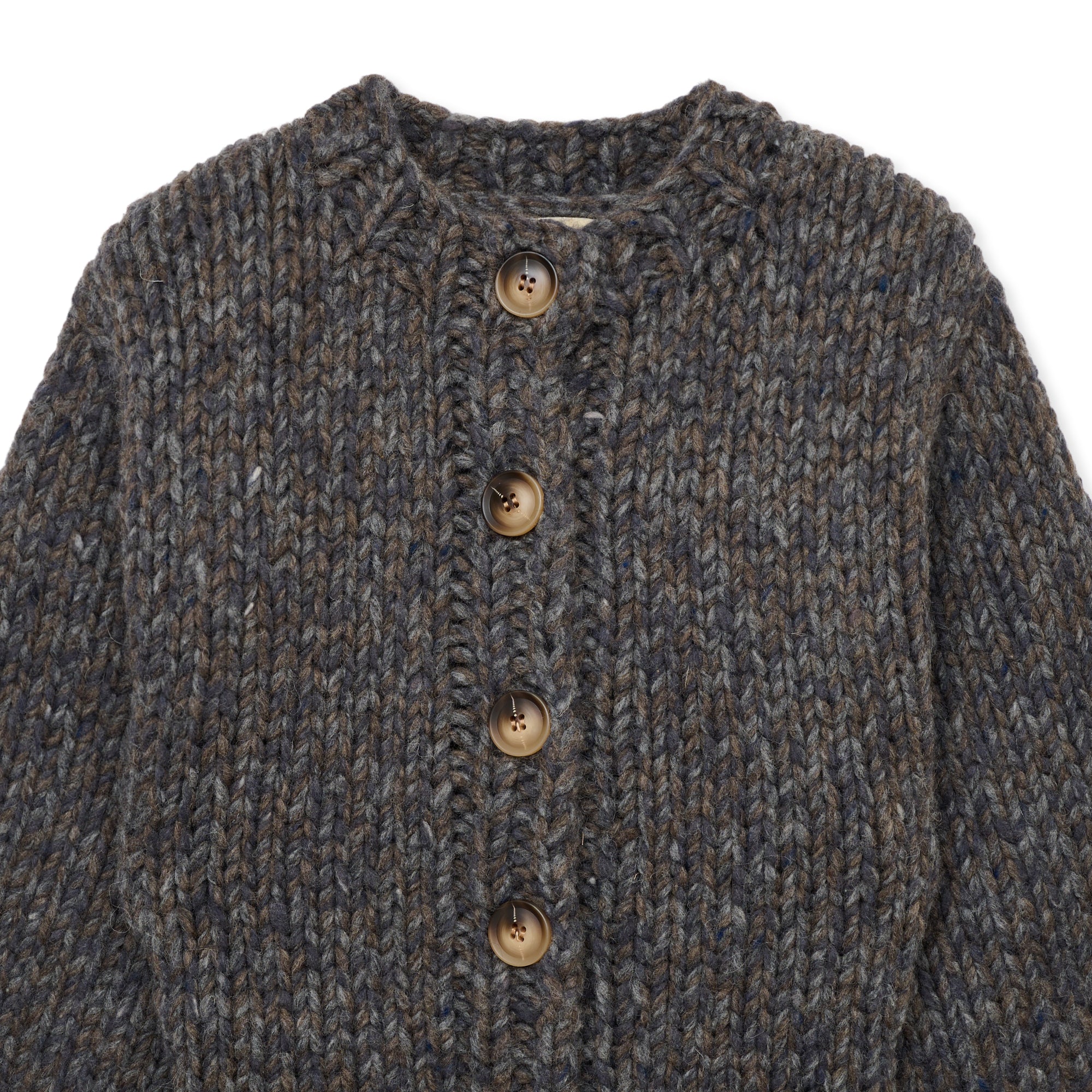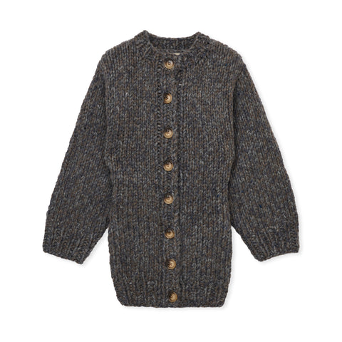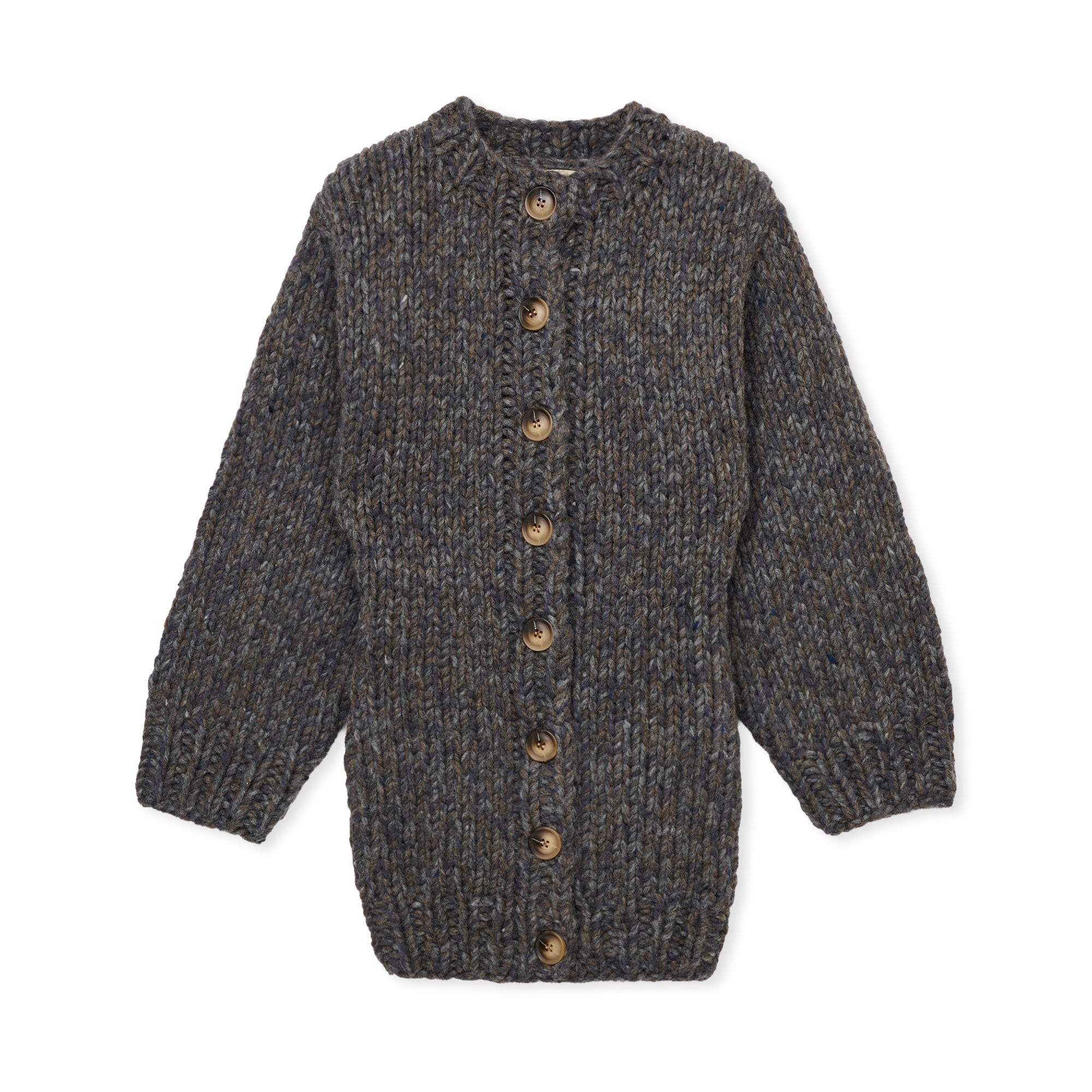 ミックス糸を大きめなゲージで編み上げた、ロングカーディガン。