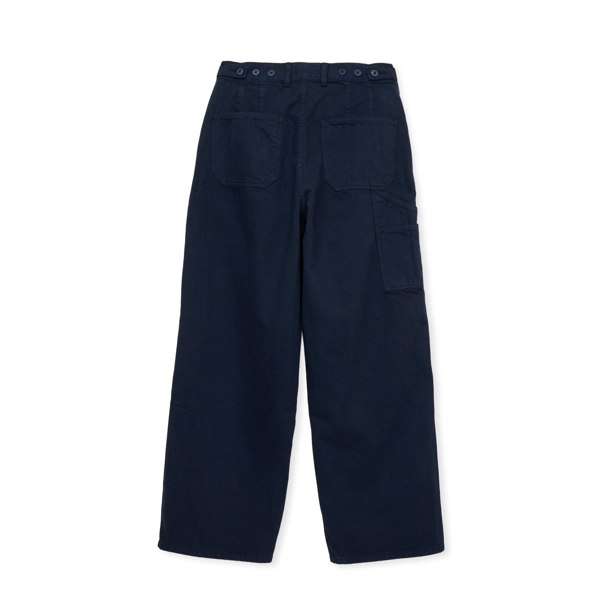 ワークパンツのデザインの特徴であるツールポケットや大きなワークポケット施したペインターパンツ。