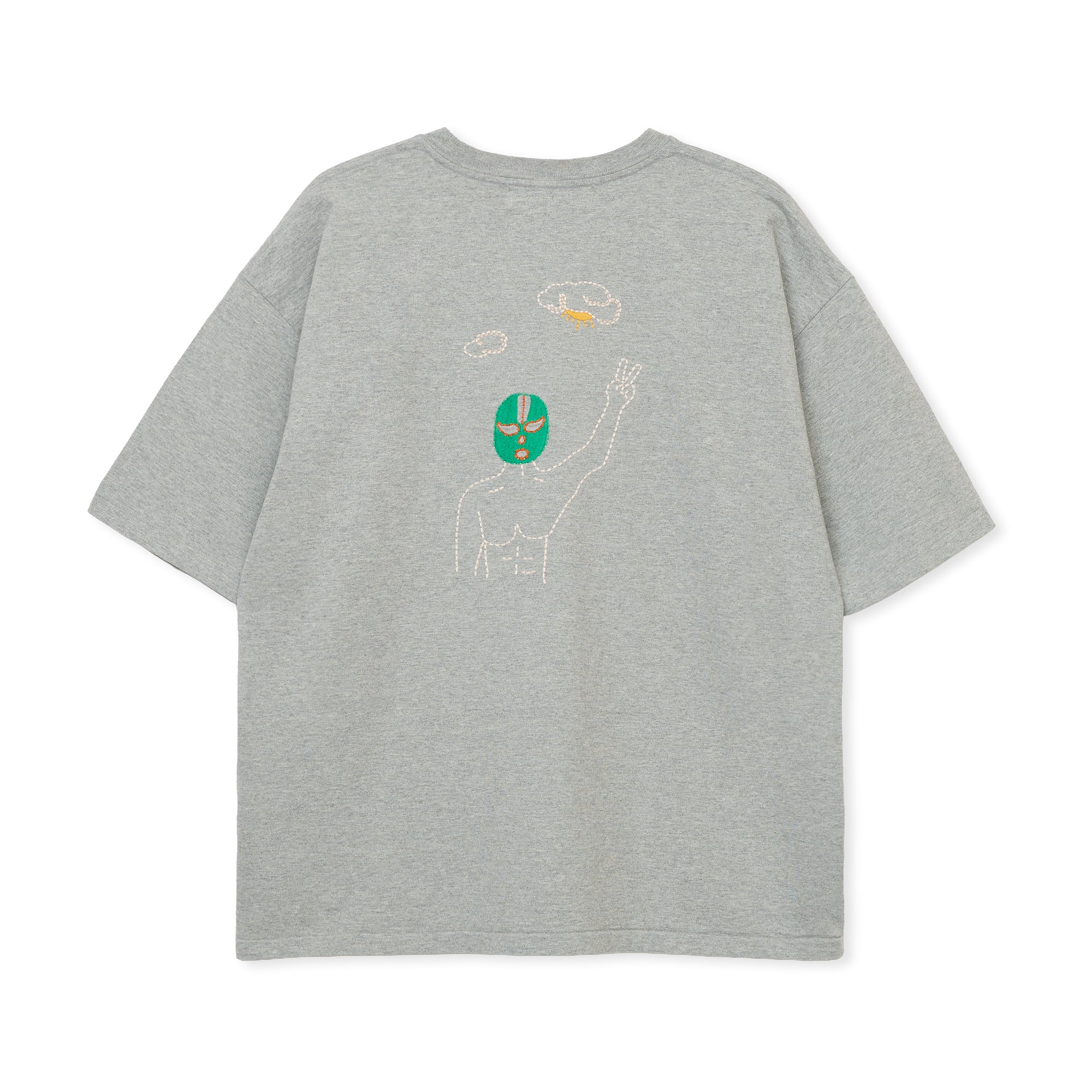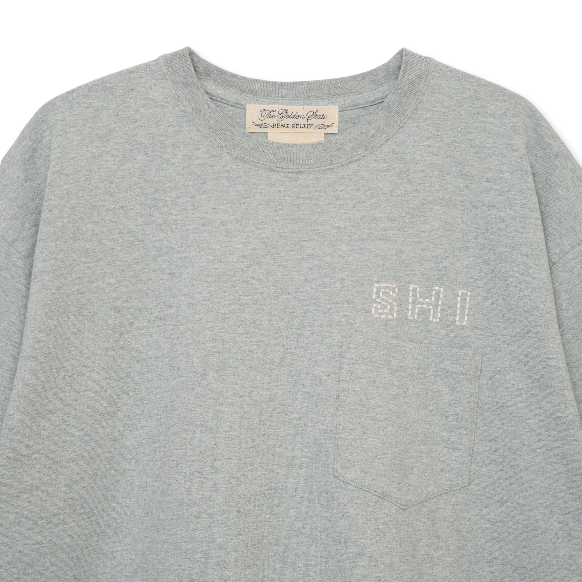 「究極なアメリカンベーシック」を追求するブランド"REMI RELIEF"とのダブルネームで制作した、刺繍入りTシャツ。胸元の刺繍を別注しています。