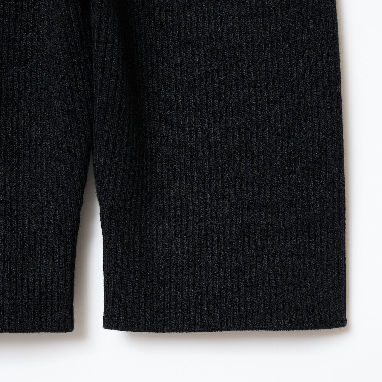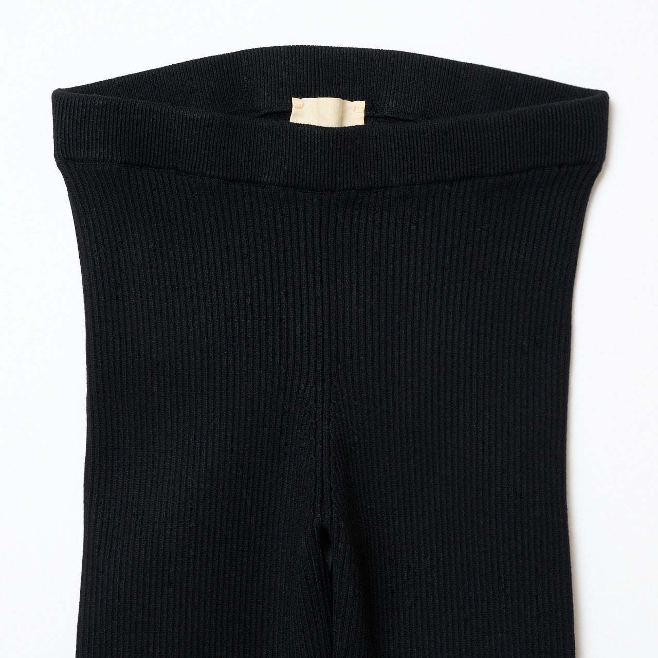 ストレッチが効いたリブ生地を使用したショート丈ニットレギンス。
