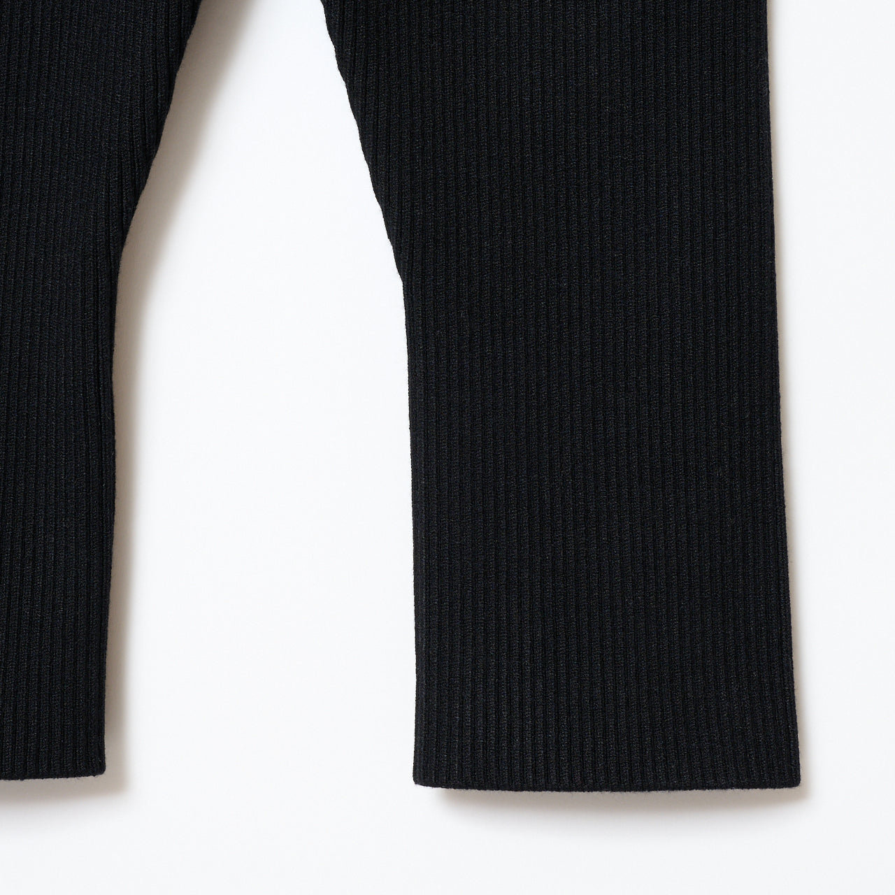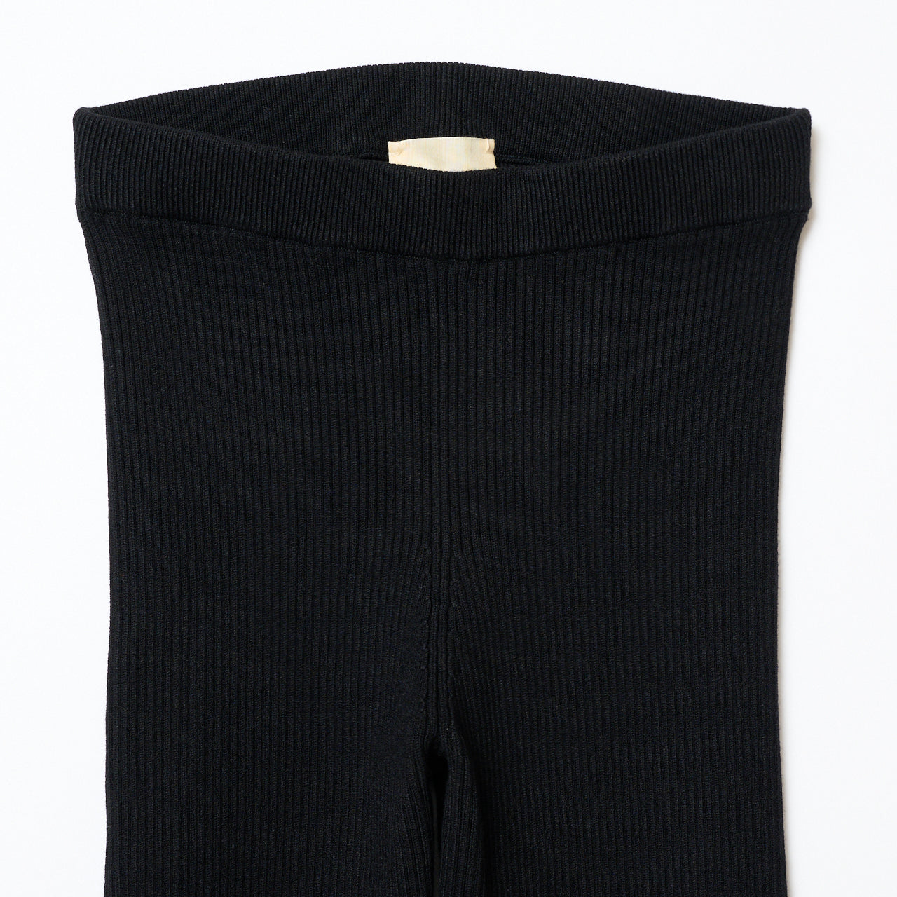 ストレッチが効いたリブ生地を使用したミドル丈のニットレギンス。