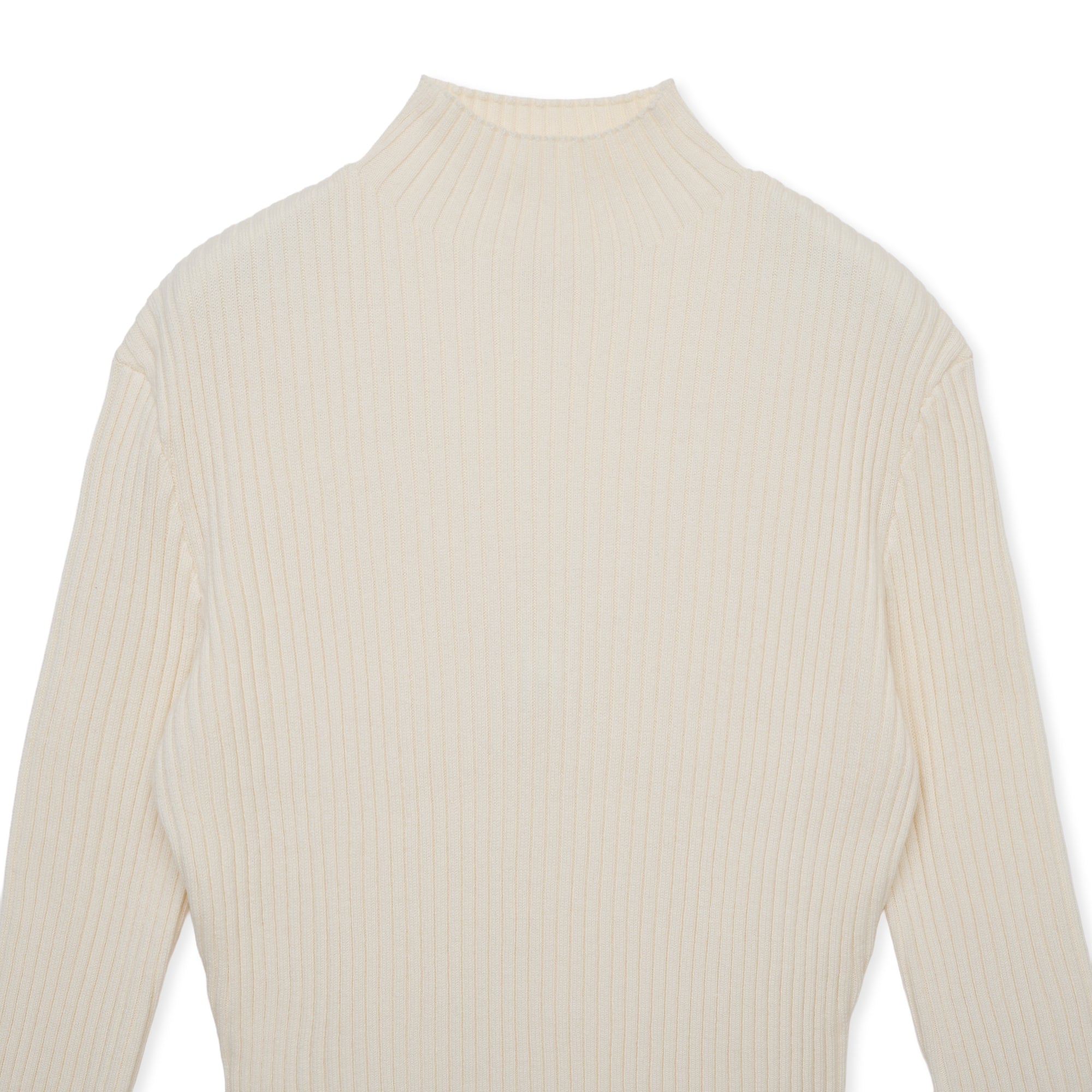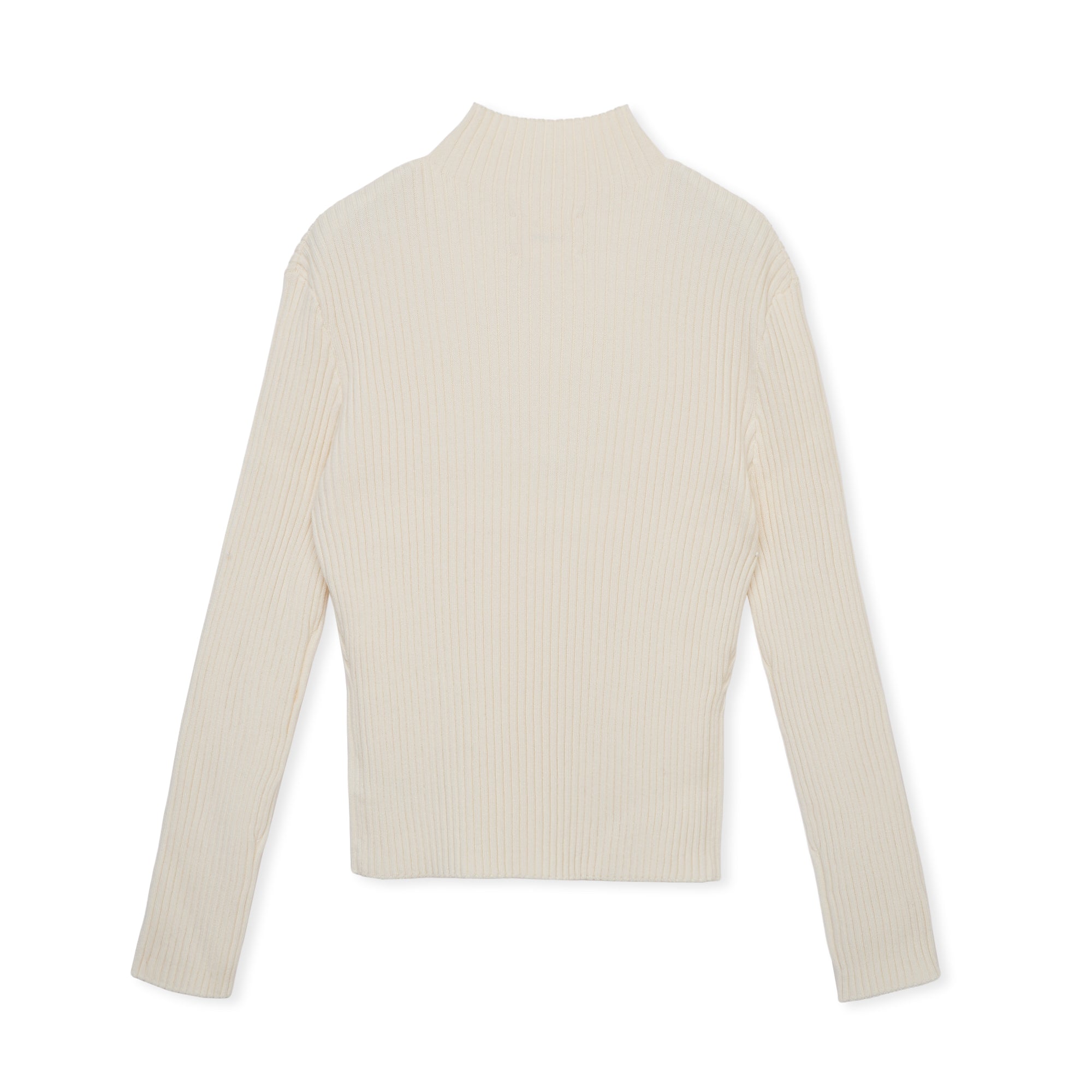 ハイネック、ストレートシルエットのプルオーバーリブニット。