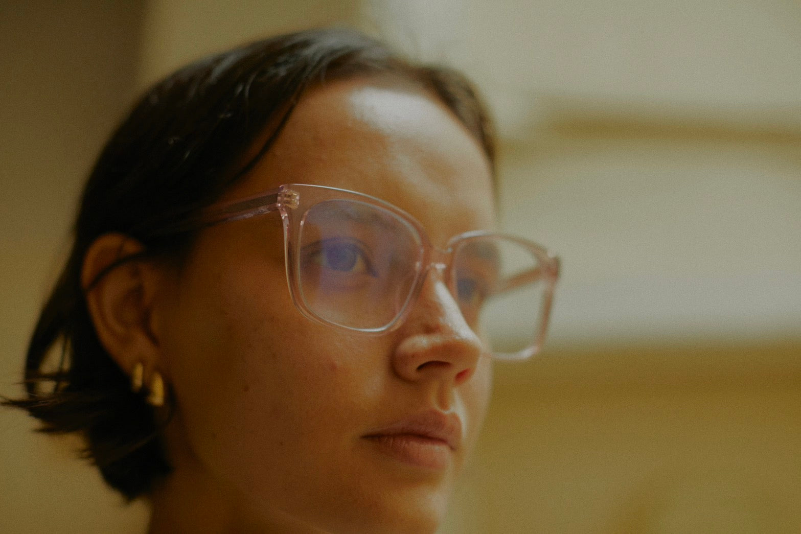 UVカット・ブルーライトカット機能付きのクリアレンズを使用。