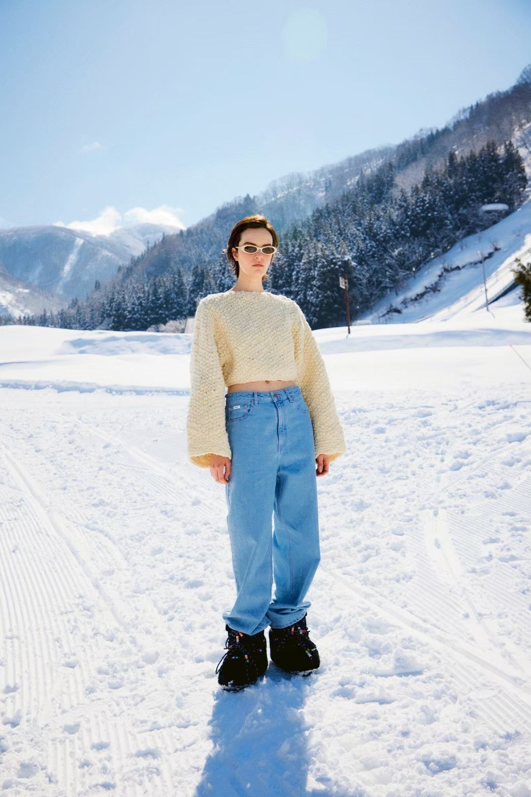 凹凸のある糸をハンドメイドで編み上げたランダムな表情が特徴。
